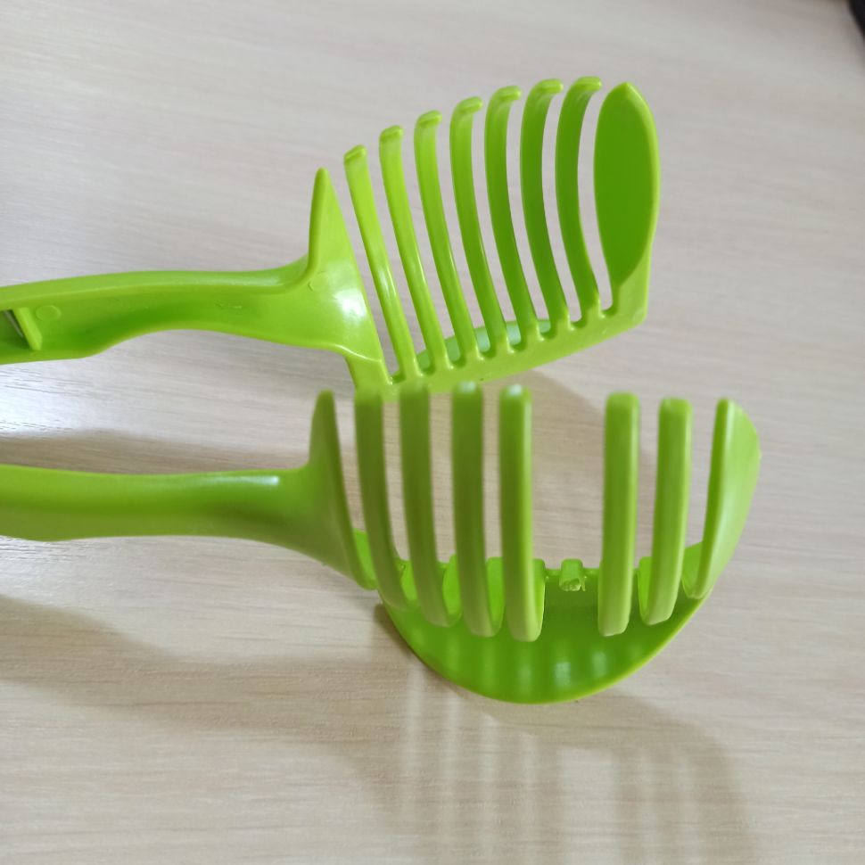 Удобно разработанный инструмент для нарезки для любой задачи на кухне идеально подходит для помидоров, лука, картофеля, лимона, цитрусовых и многого другого. Кухонный гаджет изготовлен из высококачественного АБС-пластика с удобной ручкой, экологически чистый, прочный в использовании. Конструкция зажима многофункциональная можно использовать, как щипцы для еды. Держатель для нарезки продуктов поможет вам легко и быстро нарезать на ровные кусочки фрукты, овощи сырые и отварные, помидоры, лук, отварные яйца и т.д. Ручной измельчитель для продуктов можно использовать как повседневный зажим для выпечки или как держатель дуршлаг, чтобы доставать из горячей воды, например манты, сосиски и т.д. Во внутреннюю часть ручки встроен шрапнель из нержавеющей стали, который является умеренно плотной и удобной частью для зажима. Утолщенные дугообразные режущие зубы предназначены для укрепления. Держатель для нарезки для любой задачи на кухне. Слайсер овощерезка легко использовать и мыть. Экономьте время на вашей кухне. Способ применения: поместите помидор в слайсер и просто порежьте между зазорами.