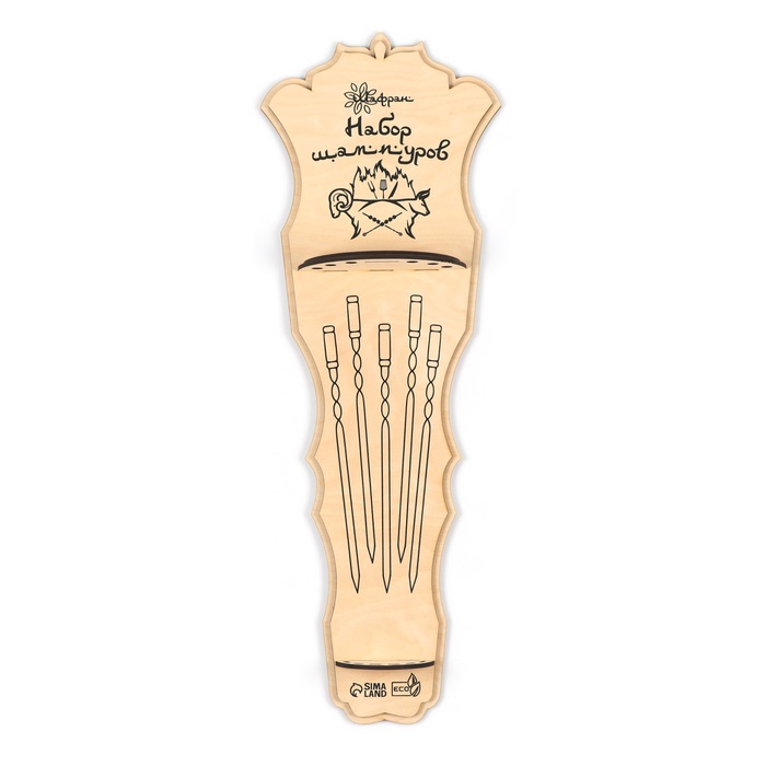Доставка: Платная Страна: Россия В боксе: 1 шт Состав: Фанера Материалы: фанера Фасовка: по 1 шт Индивидуальная упаковка: Картонная коробка / упаковка Сертификат: Не подлежит сертификации Деревянный держатель для шампуров «Шафран» – стильное и функциональное решение для хранения аксессуаров для барбекю и пикника. Изготовлен из фанеры, отличается прочностью, долговечностью и аккуратным внешним видом. Конструкция держателя предусматривает 6 отверстий для шампуров и 1 отверстие для вилки-ножа, что позволяет удобно разместить весь необходимый набор. Держатель крепится на стену и обеспечивает аккуратное хранение, экономию пространства и быстрый доступ к принадлежностям. Преимущества
