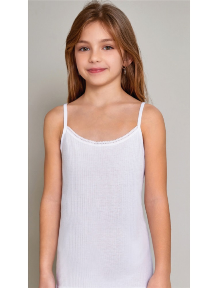 Майка для девочки на тонких бретельках представлена в белом цвете, что подчеркивает ее универсальность и подходит к каждому повседневному образу. Майка из натурального хлопка приятно облегает тело ребенка, не вызывая раздражения. Хлопковая ткань прекрасно дышит и поддерживает оптимальный температурный режим тела ребенка в течение дня. Горловина маечки украшена мягким кружевом.