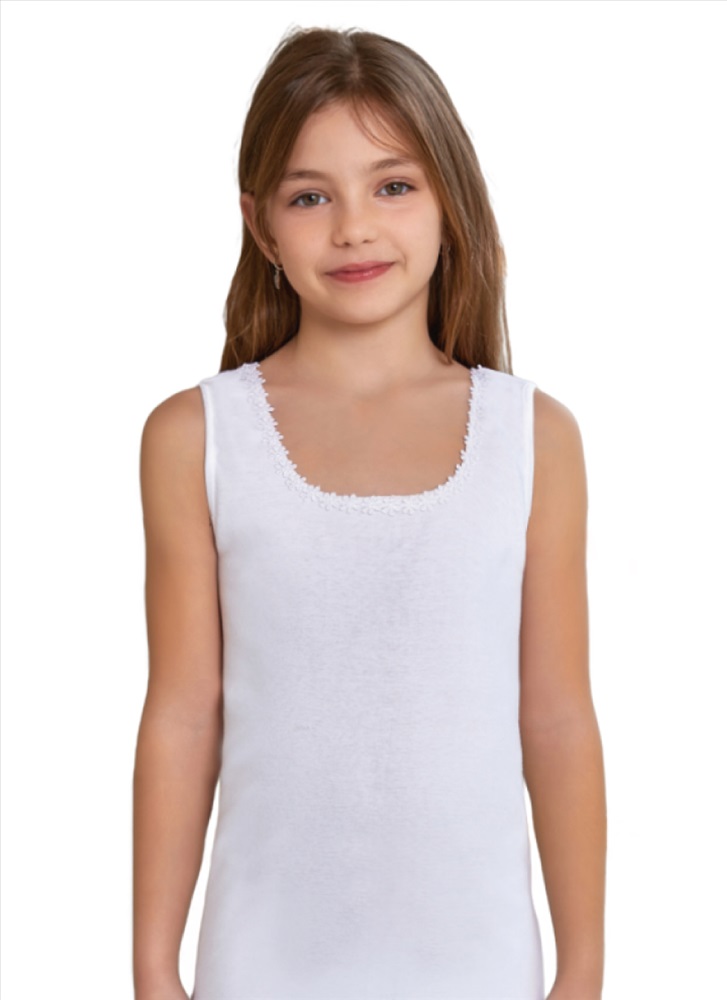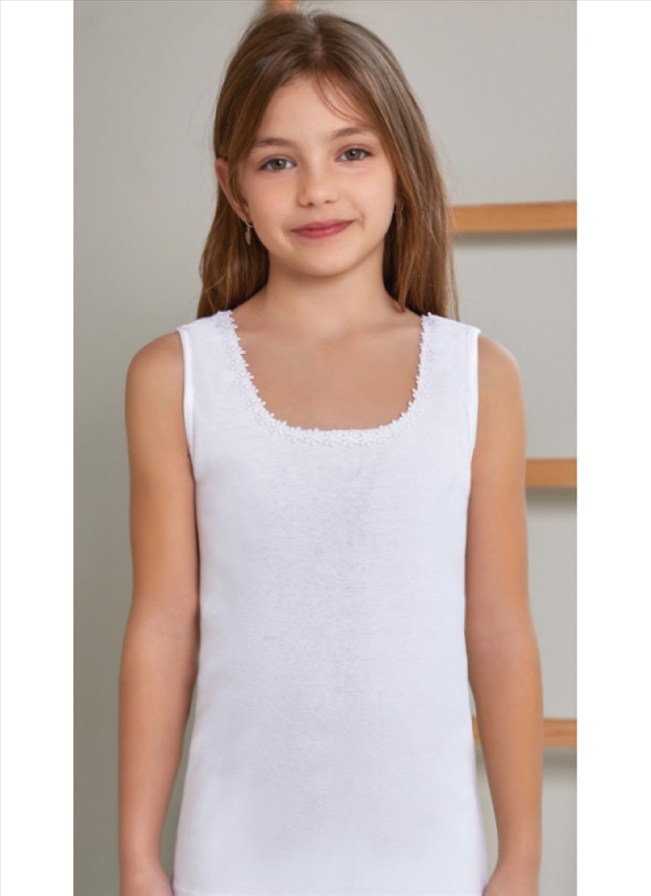 Майка для девочки представлена в белом цвете, что подчеркивает ее универсальность и подходит к каждому повседневному образу. Майка из натурального хлопка приятно облегает тело ребенка, не вызывая раздражения. Хлопковая ткань прекрасно дышит и поддерживает оптимальный температурный режим тела ребенка в течение дня, что особенно важно в теплую погоду. Горловина маечки украшена мягким кружевом.