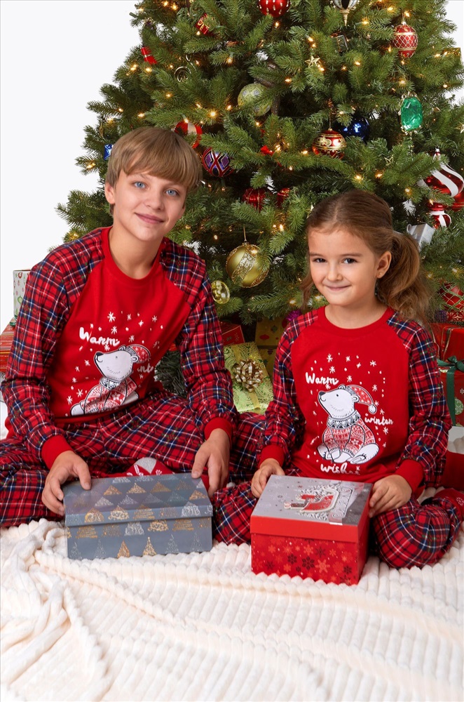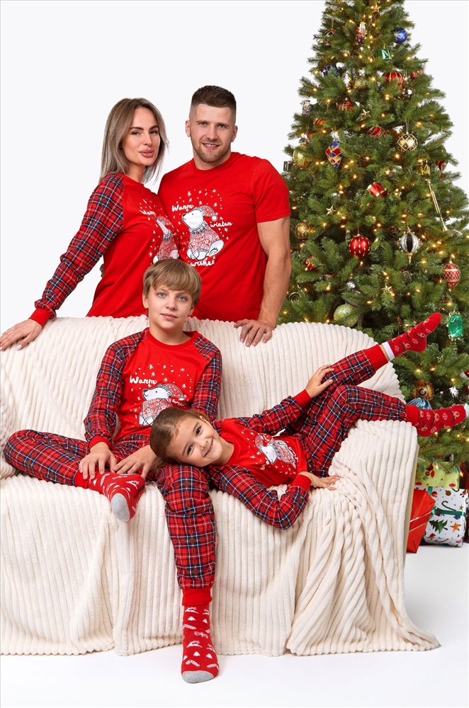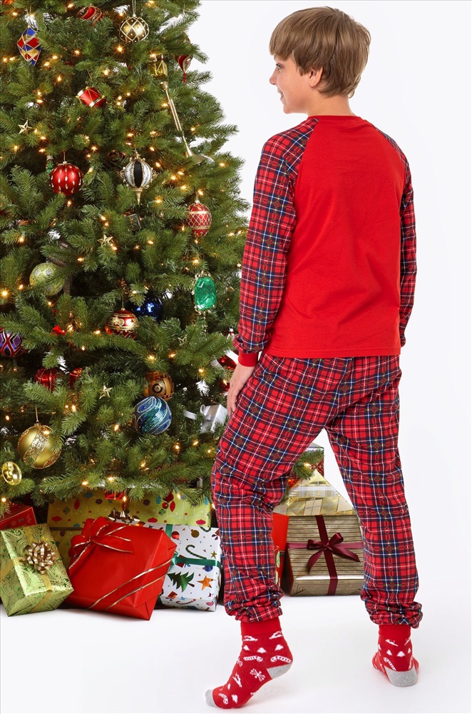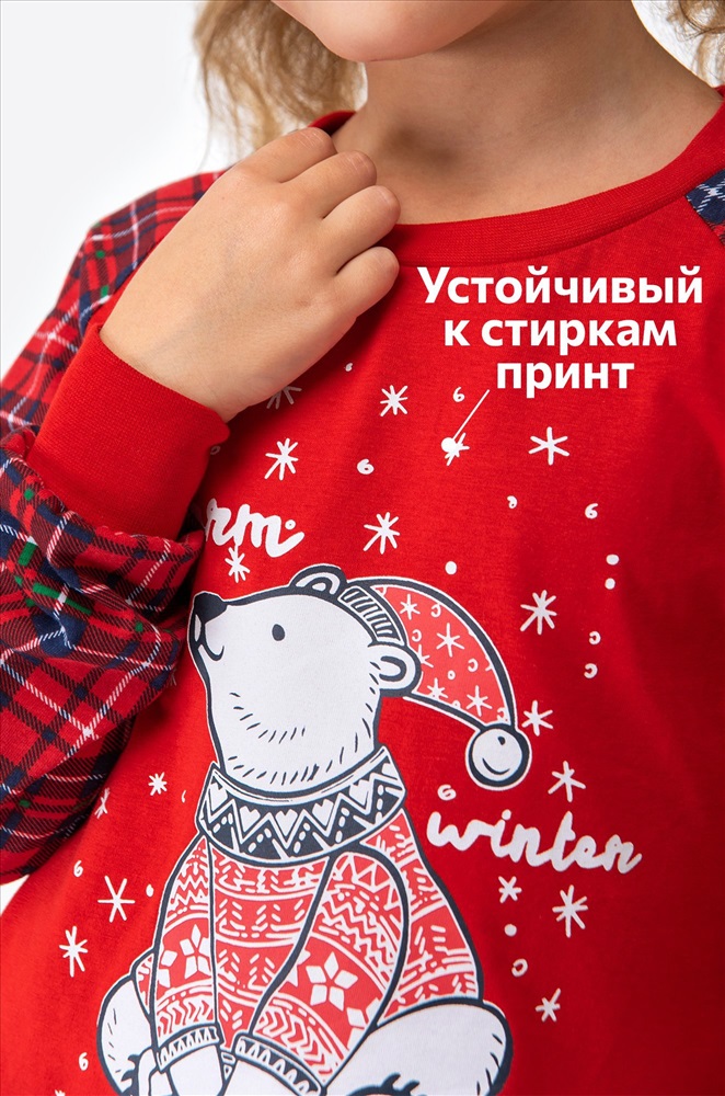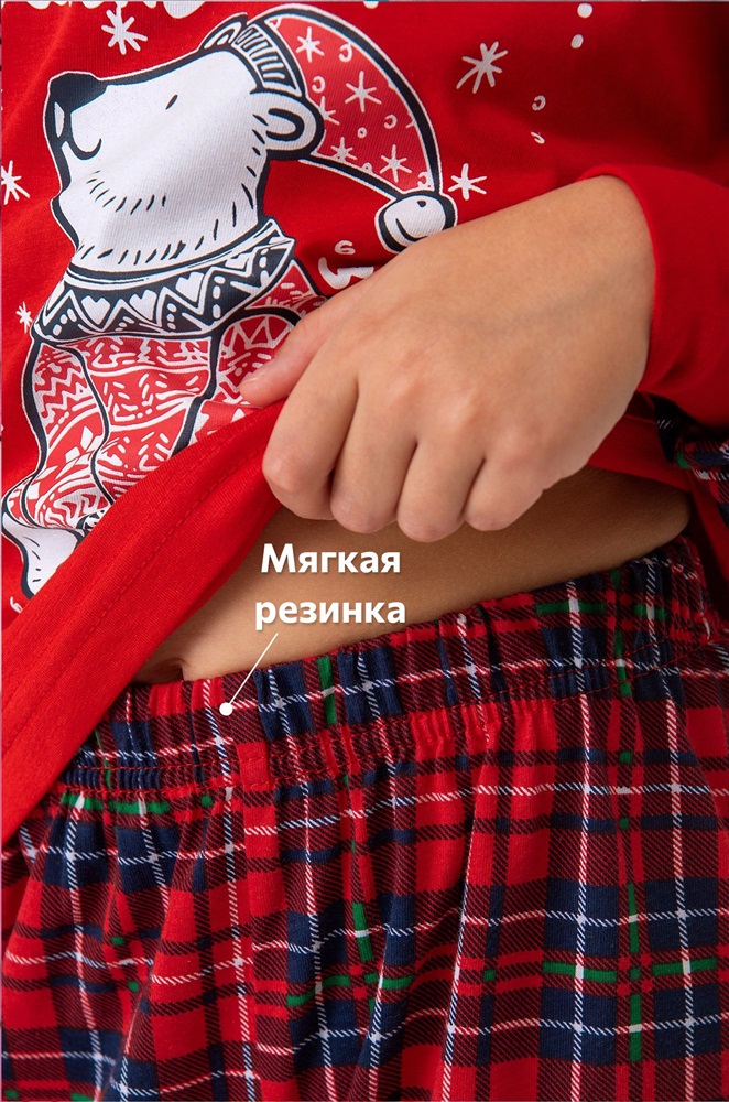 Преимущества: — дышащий трикотаж комфортен в любое время года (плотность 150 г/м2); — свободный крой не сковывает движения, ребенок легко играет и двигается; — мягкая резинка и эластичные манжеты предотвращают задирание рукавов и штанин; — красный цвет, забавный рисунок и штаны в клетку создают праздничное настроение; — домашний комплект двойка для детей и подростков выдерживает частые стирки и долго сохраняет форму и цвет; Клетчатая пижама со штанами идеально подходит для сна, отдыха, детского сада и семейных праздничных фотосессий.