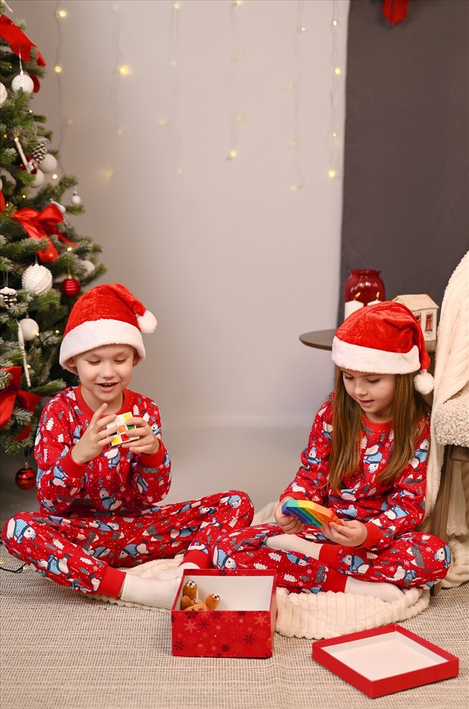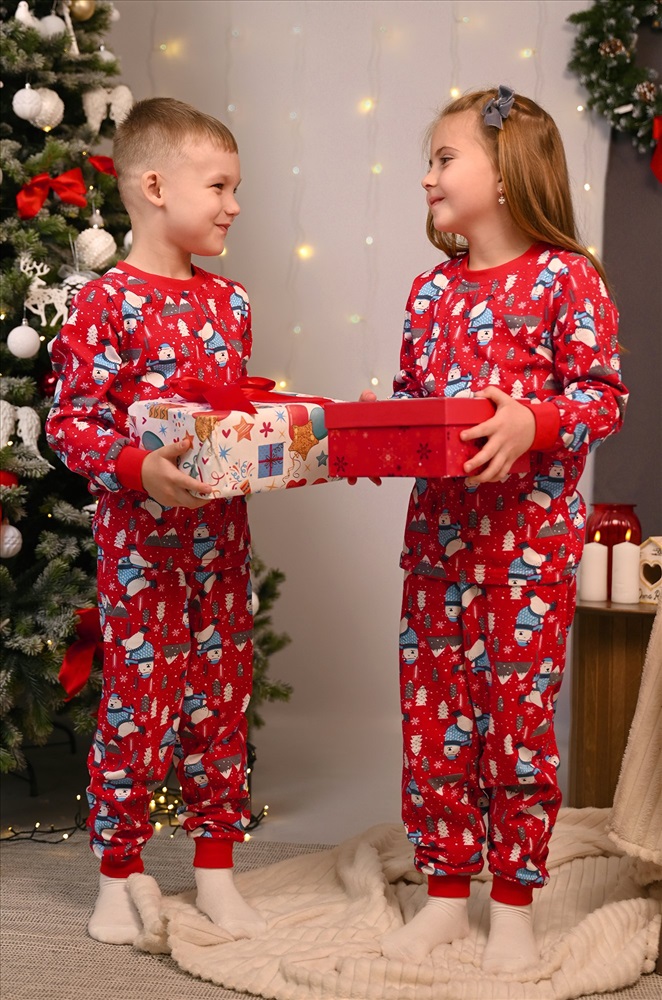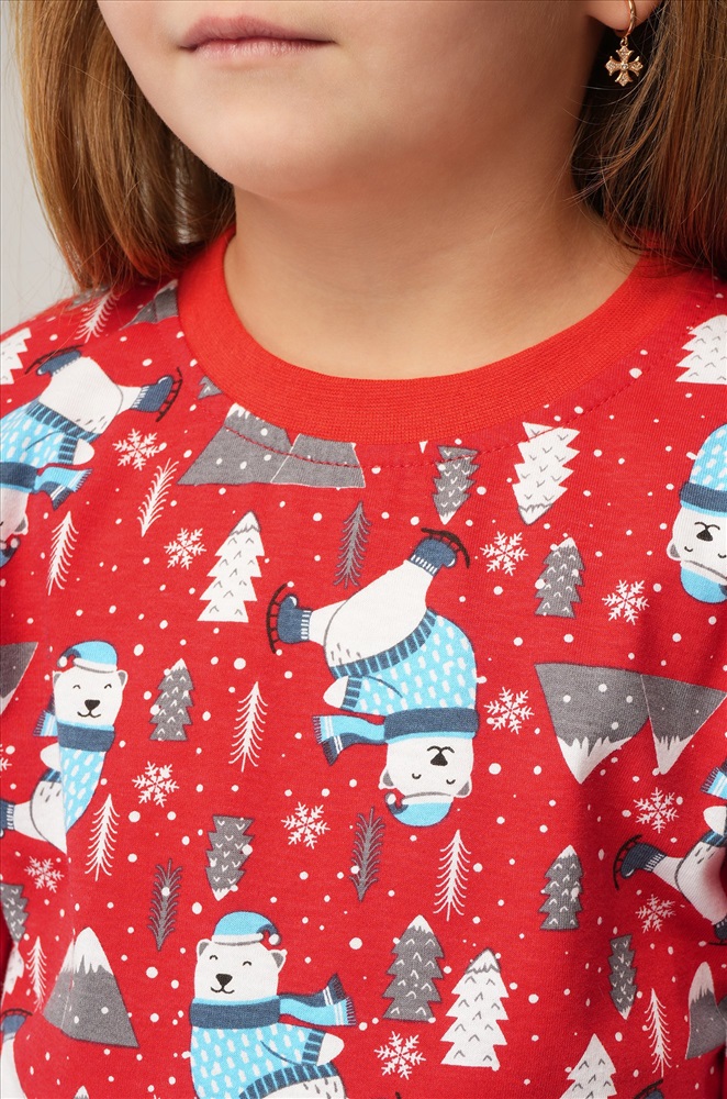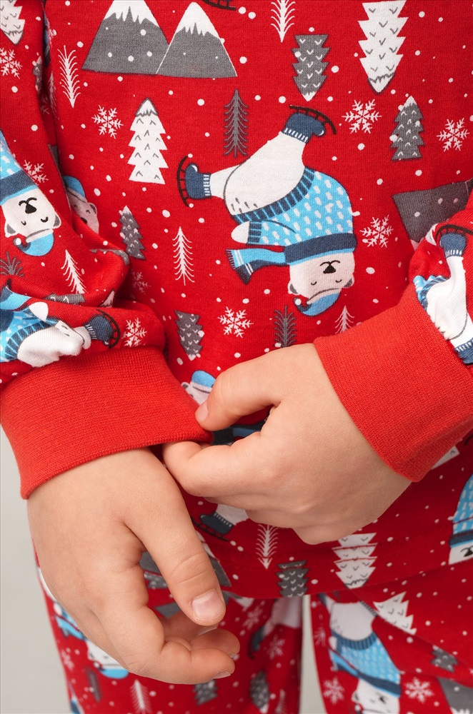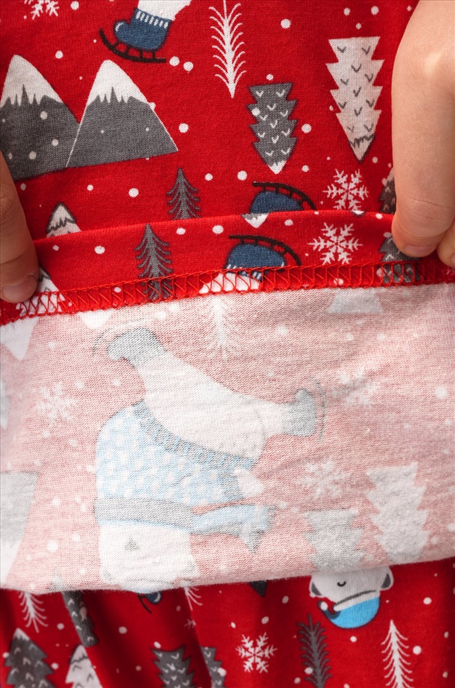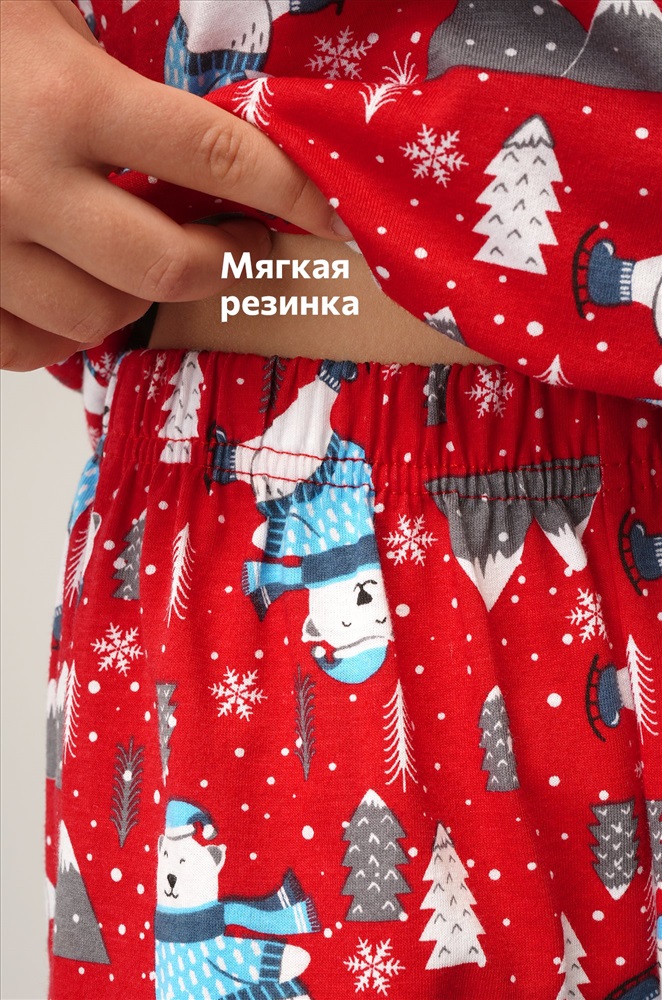 Яркая новогодняя пижама с брюками для мальчика и для девочки создаст атмосферу праздника и уюта. Веселый принт Мишка на коньках подарит радость и ожидание волшебства каждому ребенку. Детская пижама красного цвета станет отличным подарком для детей и подростков на Новый год и Рождество.