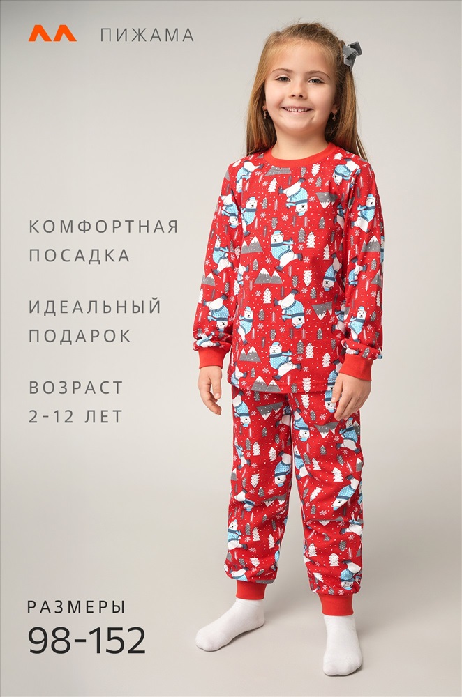 Преимущества: — 100% натуральный хлопок мягкий, дышащий и приятный к телу; — трикотажная ткань кулирная гладь дарит комфорт и свободу движений; — мягкие манжеты на рукавах и штанинах; — пояс на резинке придает комфортную посадку; — праздничный дизайн с рождественским рисунком создаёт отличное настроение. Уютная домашняя пижамка со штанами пригодится для дома и фотосессии дома. Хлопковый трикотаж мягко обнимает во время сна, позволяя двигаться свободно, а яркий принт делает её любимой частью новогодних вечеров. Размер 98: джемпер: длина:42 см; ширина:30 см; длина рукава внешняя:37 см; длина рукава внутренняя:29 см. брюки: длина внеш. шва:56 см; длина внут. шва:36 см; ширина по бедрам:28 см. Размер 104: джемпер: длина:43 см; ширина:31 см; длина рукава внешняя:38 см; длина рукава внутренняя:30 см. брюки: длина внеш. шва:59 см; длина внут. шва:38 см; ширина по бедрам:29 см. Размер 110: джемпер: длина:46 см; ширина:32 см; длина рукава внешняя:40 см; длина рукава внутренняя:32 см. брюки: длина внеш. шва:63 см; длина внут. шва:42 см; ширина по бедрам:30 см. Размер 116: джемпер: длина:48 см; ширина:33 см; длина рукава внешняя:44 см; длина рукава внутренняя:34 см. брюки: длина внеш. шва:68 см; длина внут. шва:45 см; ширина по бедрам:31 см. Размер 122: джемпер: длина:50 см; ширина:34 см; длина рукава внешняя:45 см; длина рукава внутренняя:35 см. брюки: длина внеш. шва:70 см; длина внут. шва:47 см; ширина по бедрам:33 см. Размер 128: джемпер: длина:51 см; ширина:35 см; длина рукава внешняя:46 см; длина рукава внутренняя:36 см. брюки: длина внеш. шва:75 см; длина внут. шва:51 см; ширина по бедрам:34 см. Размер 134: джемпер: длина:53 см; ширина:36 см; длина рукава внешняя:48 см; длина рукава внутренняя:38 см. брюки: длина внеш. шва:79 см; длина внут. шва:53 см; ширина по бедрам:35 см. Размер 140: джемпер: длина:56 см; ширина:37 см; длина рукава внешняя:52 см; длина рукава внутренняя:41 см. брюки: длина внеш. шва:84 см; длина внут. шва:57 см; ширина по бедрам:36 см. Размер 146: джемпер: длина:57 см; ширина:38 см; длина рукава внешняя:54 см; длина рукава внутренняя:42 см. брюки: длина внеш. шва:85 см; длина внут. шва:58 см; ширина по бедрам:39 см. Размер 152: джемпер: длина:59 см; ширина:39 см; длина рукава внешняя:55 см; длина рукава внутренняя:43 см. брюки: длина внеш. шва:88 см; длина внут. шва60 см; ширина по бедрам:41 см. *замеры выборочные, могут незначительно отличаться. Комментарии к товару