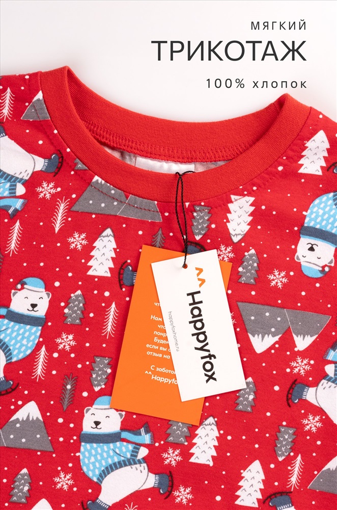 Бренд: Happyfox Серия: Happyfox- Новогодние пижамы Страна: Узбекистан Состав: 100% хлопок Материал: Супрем Плотность ткани: 145 г/м2 Цвет: красный