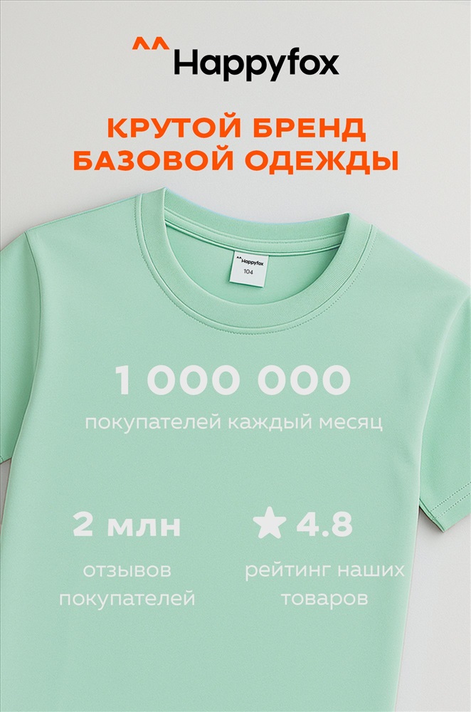 Бренд: Happyfox Серия: Happy Fox- Базовые футболки Страна: Узбекистан Состав: 100% хлопок Материал: Кулирная гладь Плотность ткани: 145 г/м2