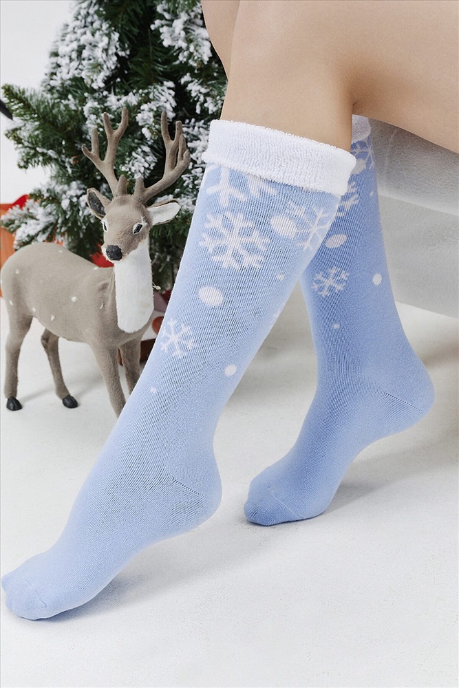 Уютные женские носочки-гольфы в новогодней расцветке. Полностью плюшевые внутри. Длина до середины икры. В упаковке 2 пары . Упаковка - прозрачный пакет.