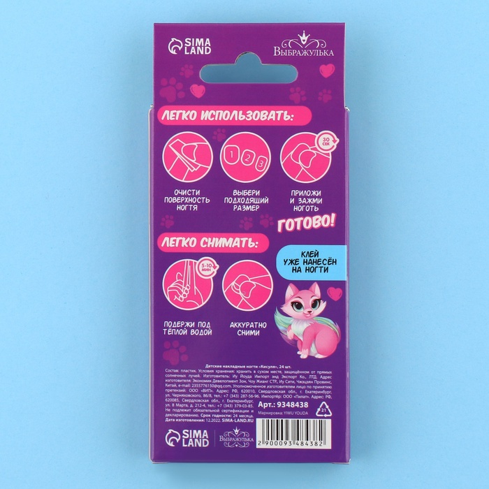 Габариты: 1,2 x 6,5 x 14,2 Страна: Китай В боксе: 720 шт Состав: Пластик Материалы: пластик Фасовка: по 12 шт Индивидуальная упаковка: Цветная картонная коробка Габариты товара: 14,7 см × 6,3 см × 1,2 см Сертификат: Не подлежит сертификации Цвет: Фиолетовый Для кого: Для девочки В наборе, шт.: 24 Вид упаковки: Коробка Тематика праздника: Универсальная тематика Адресат: Без адресата Возраст: Детский Составляющие набора: Принадлежности для маникюра Возраст: Для детей Детские накладные ногти придуманы для самых ярких и стильных девчонок! Клей уже нанесён на ногти. Сделать красивый маникюр очень просто