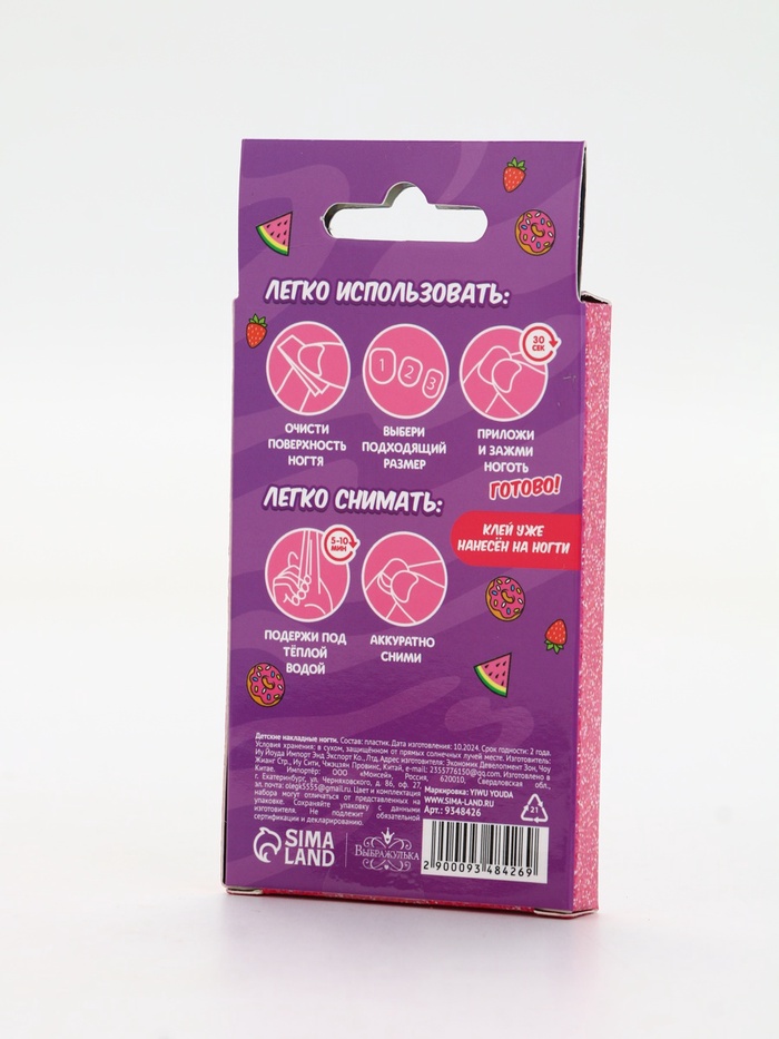 Детские накладные ногти придуманы для самых ярких и стильных девчонок! Клей уже нанесён на ногти.