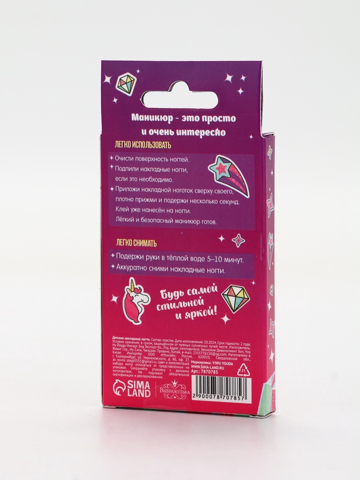 Детские накладные ногти придуманы для самых ярких и стильных девчонок! Клей уже нанесён на ногти.