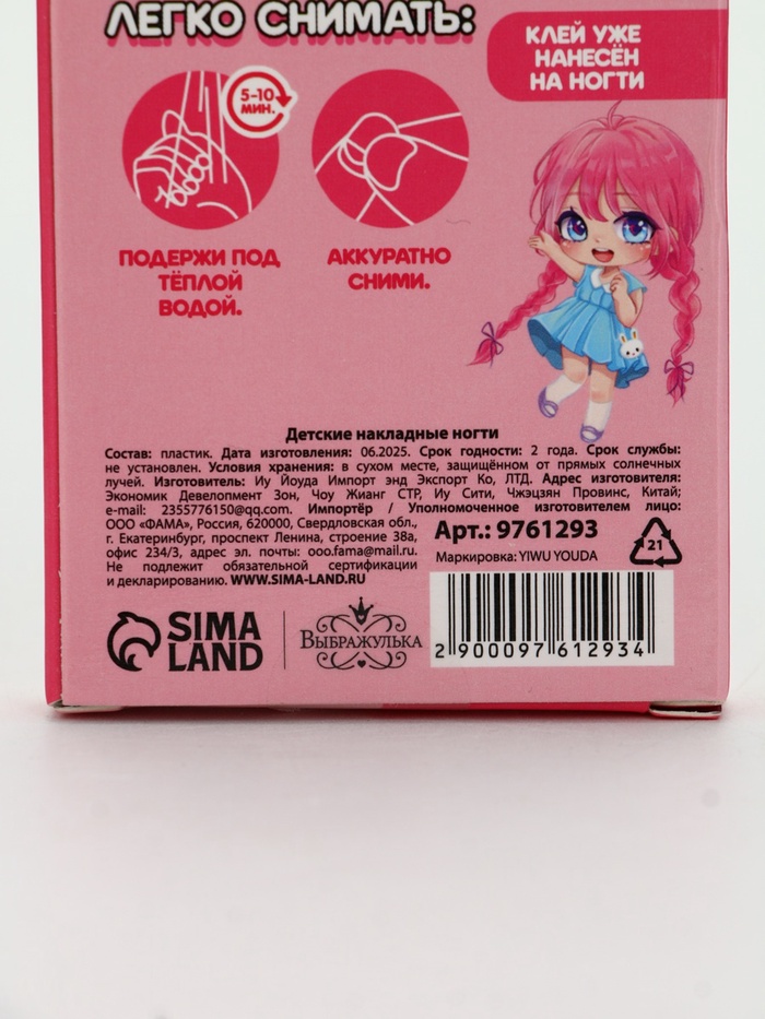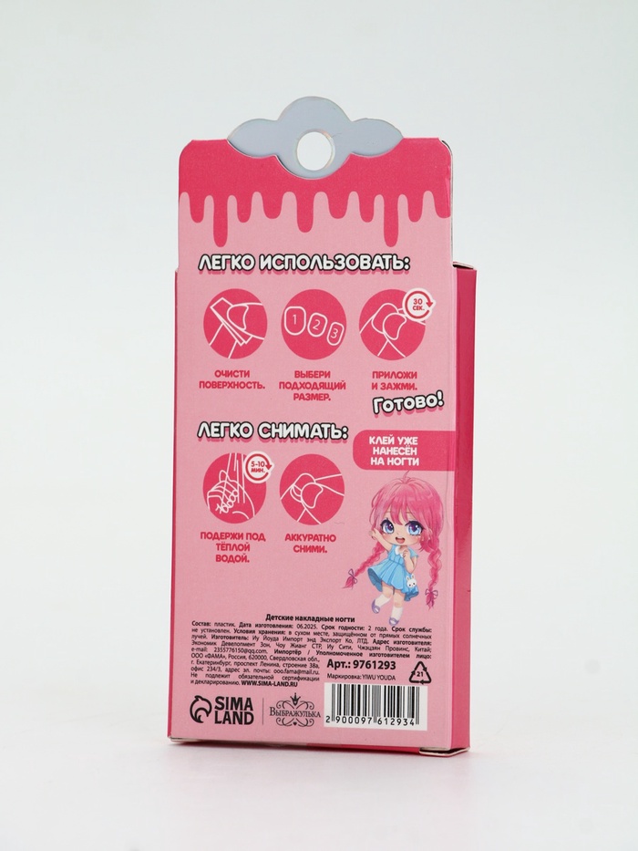 1. Подержите руки в тёплой воде 5–10 минут..2. Аккуратно снимите накладные ногти.В наборе 12 шт.