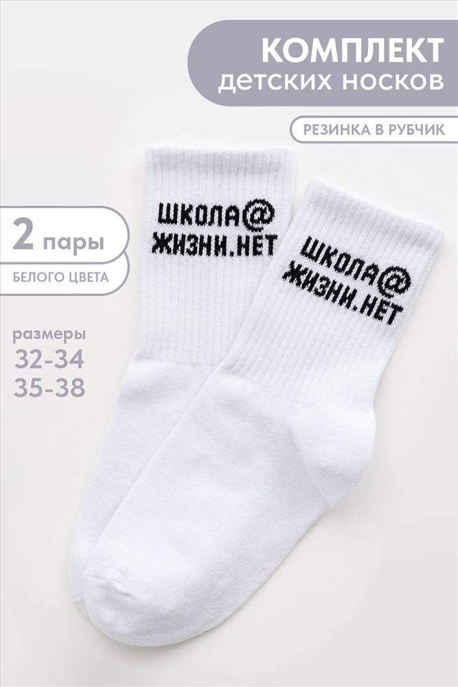 Комплект детских носков 2 пары. Широкая резинка. По верхней части носка надпись Школ@ жизни.нет