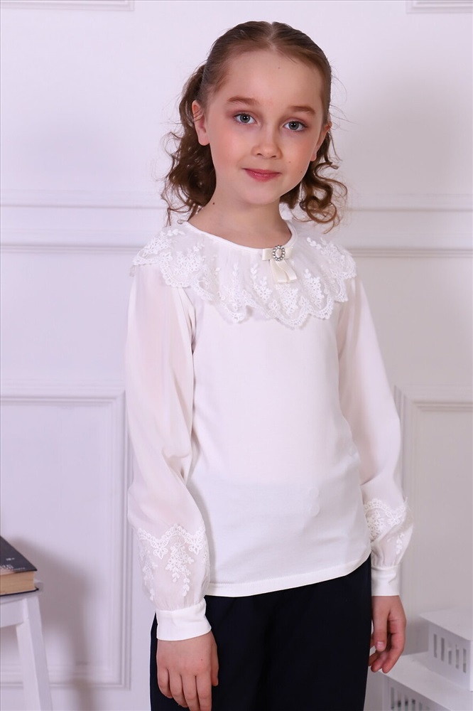 ID товара: 878353 Состав: 92% Хлопок, 8% Лайкра Сезон: Демисезон Длина: Средняя Фасон: Прямой Рукав: длинные Вырез горловины: Воротник-стойка Основная ткань: Кулирка с лайкрой Стиль: Повседневный Страна бренда: Россия Страна производства: Россия Джемпер для девочек с длинным рукавом. Данная модель станет основой школьного или праздничного образа. Элегантное мягкое кружево на горловине можно красиво разложить на сарафан или пиджак, что создаст нарядный look. Оригинальная модель добавит романтизма в образ и подчеркнет индивидуальность, можно сочетать с юбкой, сарафаном и брюками. Шифоновые рукава на манжете, по низу настрочено кружево. На спинке вырез в виде капли с застежкой на петлю и пуговицу. Джемпер сшит из качественного трикотажа - кулирка с лайкрой, используемый материал не теряет форму после многократных стирок, мягкий и приятный к телу, устойчив к износу. Для сохранения первоначальных свойств изделия, важно соблюдать рекомендации по уходу. Комментарии к товару