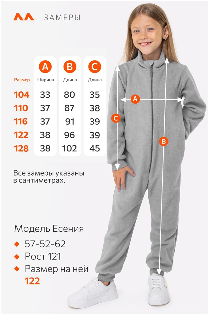 Размер 104: длина:88 см; ширина:35 см; длина рукава внешняя:41 см; длина рукава внутренняя:29 см.