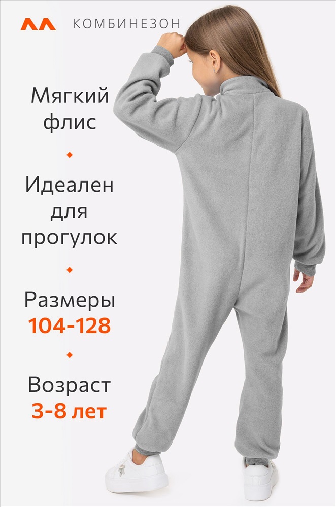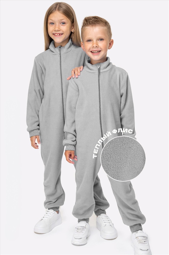 Преимущества: — флисовый комбинезон — невероятно мягкий и приятный к телу; — теплый комбинезон для девочек и мальчиков отлично сохраняет тепло; — однотонный серый комбинезон выдерживает многочисленные стирки, не теряя форму и цвет; — прямой крой обеспечивает свободу движений и комфорт при активных играх; — застежка на длинной молнии делает переодевание быстрым и удобным; — предусмотрена защита подбородка от контакта с молнией; — манжеты на рукавах и штанинах не дают штанинам и рукавам задираться; — воротник-стойка надежно защищает от ветра и холода; — детский комбинезон можно носить как верхний слой осенью и весной, а зимой использовать как поддеву. Теплый комбинезон идеально подходит для осенних прогулок, детского сада, зимних поездок и путешествий.