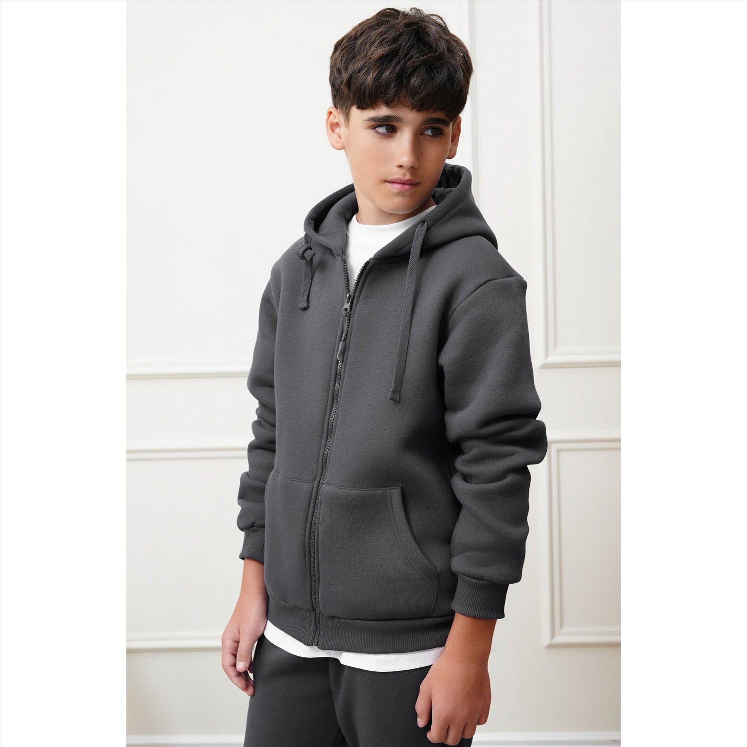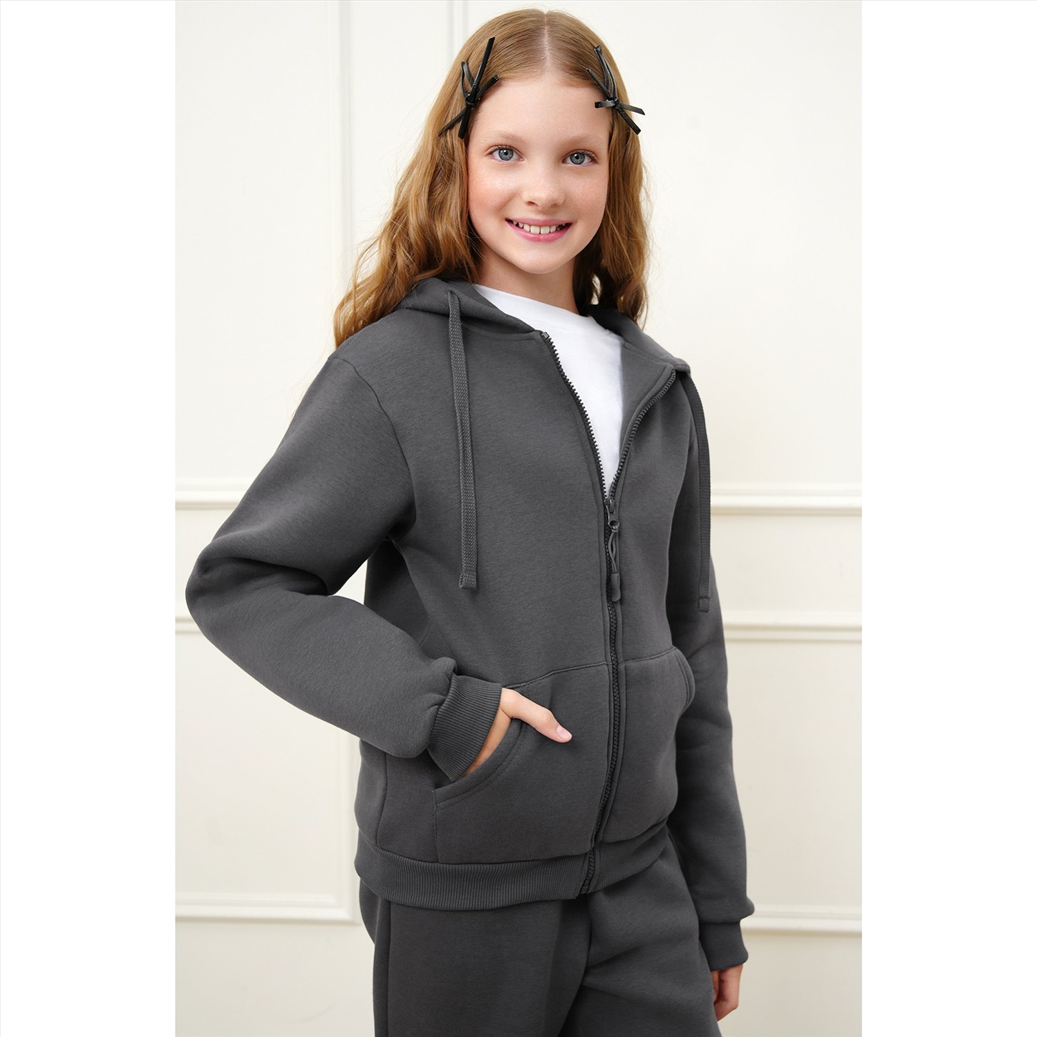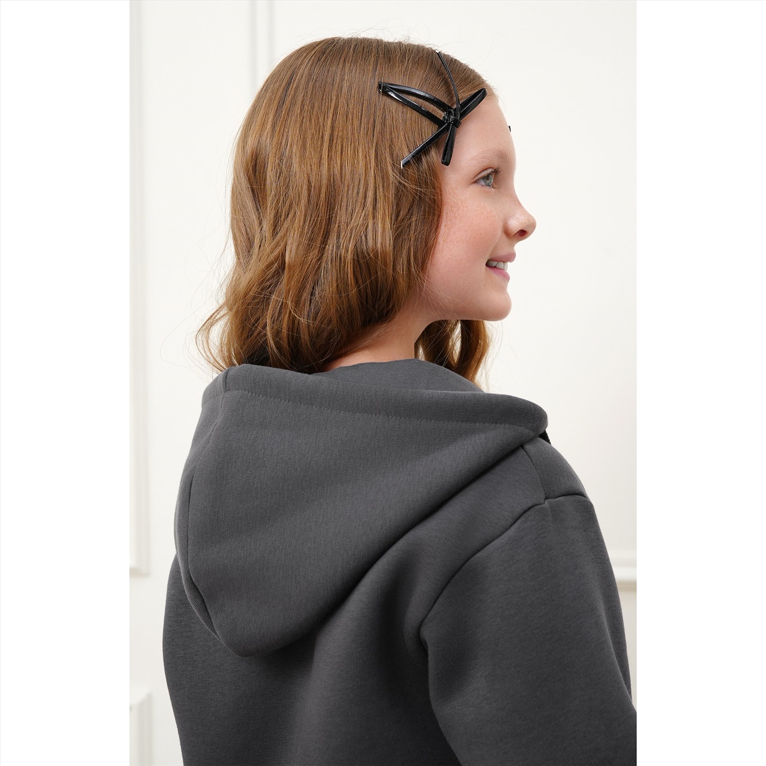 Детский костюм с худи и брюками для мальчиков и девочек выполнен из плотного трикотажа футер с начесом. Базовый темно-серый цвет делает комплект для подростков универсальным и легко вписывается в повседневные образы.