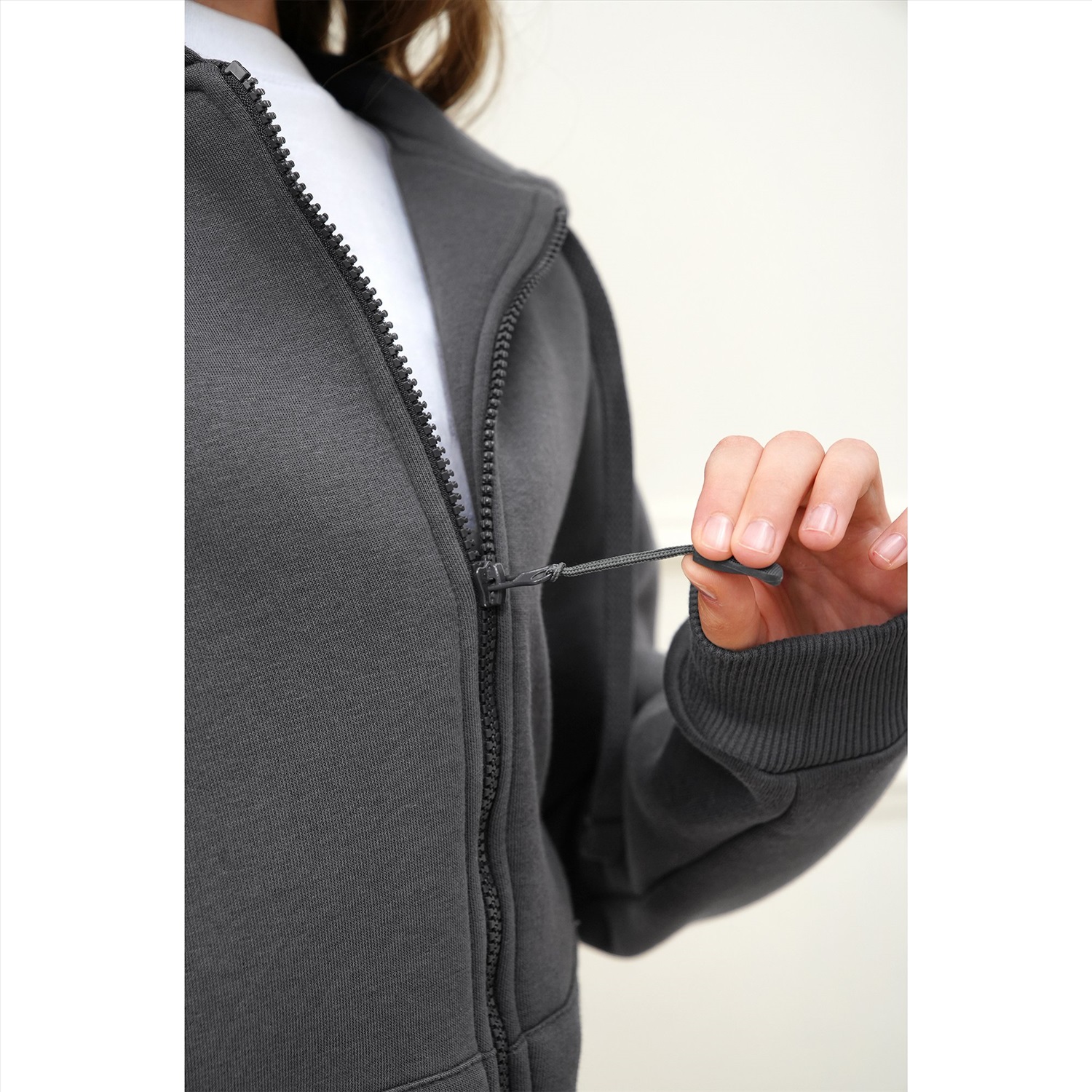 – толстовка на молнии с капюшоном и карманами дарит комфорт и удобство;