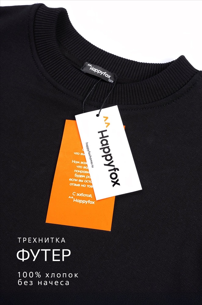 Бренд: Happyfox Страна: Узбекистан Состав: 100% хлопок Материал: Футер трёхнитка Плотность ткани: 310 г/м2 Цвет: черный Акция: ЧЕРНАЯ ПЯТНИЦА