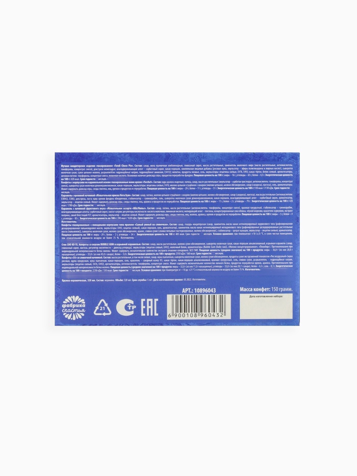 Производитель: Disney Габариты: 12 x 8,5 x 10 Страна: Россия В боксе: 7 шт Состав: См. на упаковке Материалы: см. на упаковке Фасовка: по 1 шт Индивидуальная упаковка: Пакет (БОПП, полиэтилен, ПВХ, дой-пак) Сертификат: ЕАС Набор: Да Цвет: Синий Для кого: Для девочки В наборе, шт.: 2 Вес нетто, г: 150 Вид упаковки: Картонная упаковка Символ года: Нет Тематика праздника: Новый год Адресат: Без адресата Возраст: Детский Составляющие набора: Конфеты, Кружка Возраст: Для детей