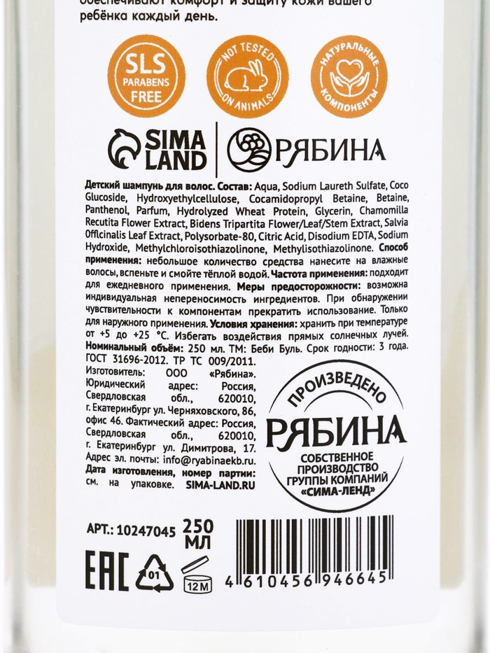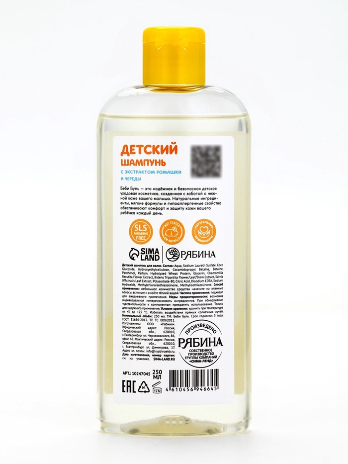 Габариты: 4 x 6,5 x 17 Страна: Россия В боксе: 54 шт Состав: См. на упаковке Материалы: см. на упаковке Фасовка: по 1 шт Индивидуальная упаковка: Без упаковки Сертификат: ЕАС Набор: Нет Для кого: Унисекс, Для мальчика, Для девочки Объём, мл: 250 Вид упаковки: Без упаковки Тематика праздника: Универсальная тематика Адресат: Без адресата Аромат: Без аромата Темпер. ограничение НЕ НИЖЕ ℃: +5 Темпер. ограничение НЕ ВЫШЕ ℃: +25 Возраст: Для детей Тип волос: Для всех типов Эффект: Очищение Вид шампуня: Жидкий Назначение: Очищение, детокс, Увлажнение Состав: Aqua, Sodium Laureth Sulfate, Coco Glucoside, Hydroxyethylcellulose, Cocamidopropyl Betaine, Betaine, Panthenol, Bidens Tripartita Flower/Leaf/Stem Extract, Chamomilla Recutita Flower Extract, Hydrolyzed Wheat Protein, Glycerin, Parfum, Disodium EDTA, Citric Acid, Połysorbate-80, Sodium Hydroxide, Methylchloroisothiazolinone, Methylisothiazolinone Комментарии к товару