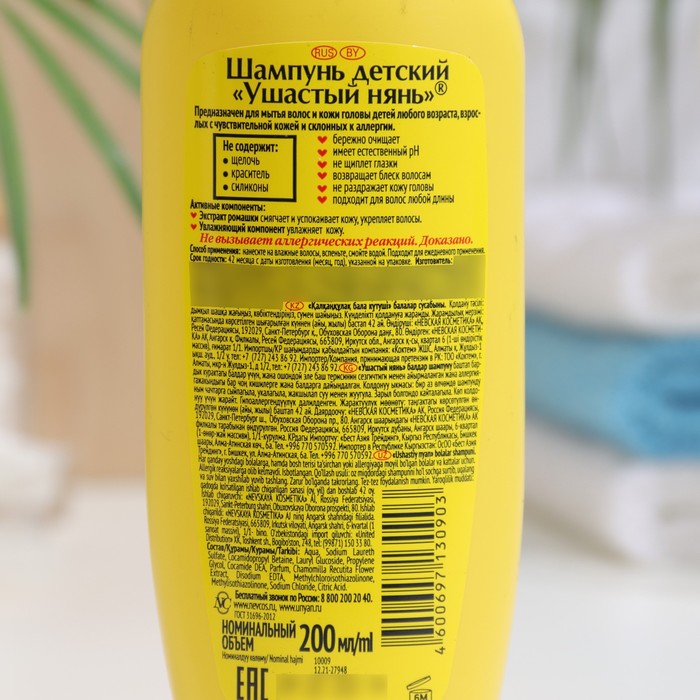 Габариты: 6,5 x 4 x 17 Страна: Россия В боксе: 42 шт Фасовка: по 1 шт Индивидуальная упаковка: Без упаковки Габариты товара: 4 см × 5,8 см × 17,1 см Сертификат: ЕАС Для кого: Для девочки, Для мальчика Объём, мл: 200 Аромат: Ромашка Составляющие набора: Шампунь Темпер. ограничение НЕ НИЖЕ ℃: 0 Тип волос: Для всех типов Эффект: Питание Вид шампуня: Жидкий Шампунь предназначен для детей любого возраста, начиная с рождения, а также для взрослых с чувствительной кожей головы. Подходит для применения при поражении волосистой части головы младенцев послеродовыми корочками. Особенности - Бережно очищает волосы и кожу головы. - Подходит при раздражении кожи. - Не щиплет глазки. - Увлажняет кожу и сохраняет её водно-жировой баланс. - Имеет естественный pH. - Подходит для любого типа волос. Не содержит: красителей, щелочи, силиконов, парабенов и запрещенных ингредиентов. Активные компоненты - Экстракт ромашки смягчает и успокаивает кожу, оказывает антисептическое и противовоспалительное действие, снижает вероятность проявления аллергических реакций. - Увлажняющий компонент увлажняет и смягчает. Состав Вода, лауретсульфат натрия, кокамидопропилбетаин, лаурилглюкозид, пропиленгликоль, кокамид ДЭА, отдушка, экстракт ромашки, динатриевая соль ЭДТА, консервант, хлорид натрия, лимонная кислота. Комментарии к товару