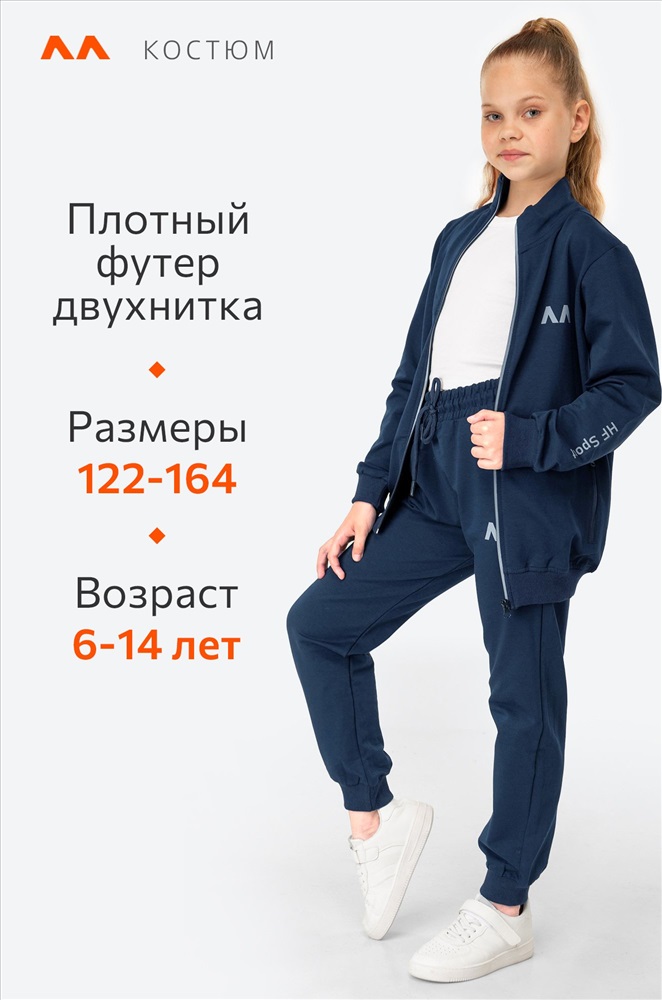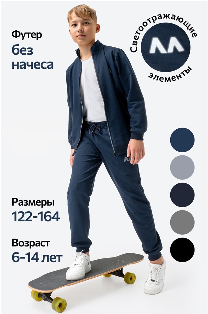 Костюм двойка выполнен из трикотажа футер, который идеален для осени, весны и прохладного лета. Хлопковый костюм оттенка индиго хорошо тянется и держит форму даже после частых стирок. В комплекте толстовка с длинными рукавами и брюки джоггеры. Благодаря свободному крою штаны не стесняют движений. Практичный шнурок на талии позволяет легко регулировать посадку. Уютные карманы согреют руки в холодную погоду. Эластичные манжеты не позволяют рукавам и штанинам задираться при активных движениях. Благодаря светоотражающим элементам ребенок будет заметен в темное время суток. Трикотажный костюм идеален для летних, осенних и весенних дней. Демисезонный костюм из хлопка станет отличным вариантом для прогулок, тренировок и активного отдыха. Подростковый костюм идеален для физкультуры в школе, футбола и бега. Спортивки и толстовку можно носить как вместе, так и по отдельности, создавая крутые образы в уличном и спорт кэжуал (sport casual) стилях. Модель Милана, рост 141 см, параметры 62-56-74 см. На ней 140 размер. Модель Влад, рост 157 см, параметры 75-71-89 см. На нем размер 158.