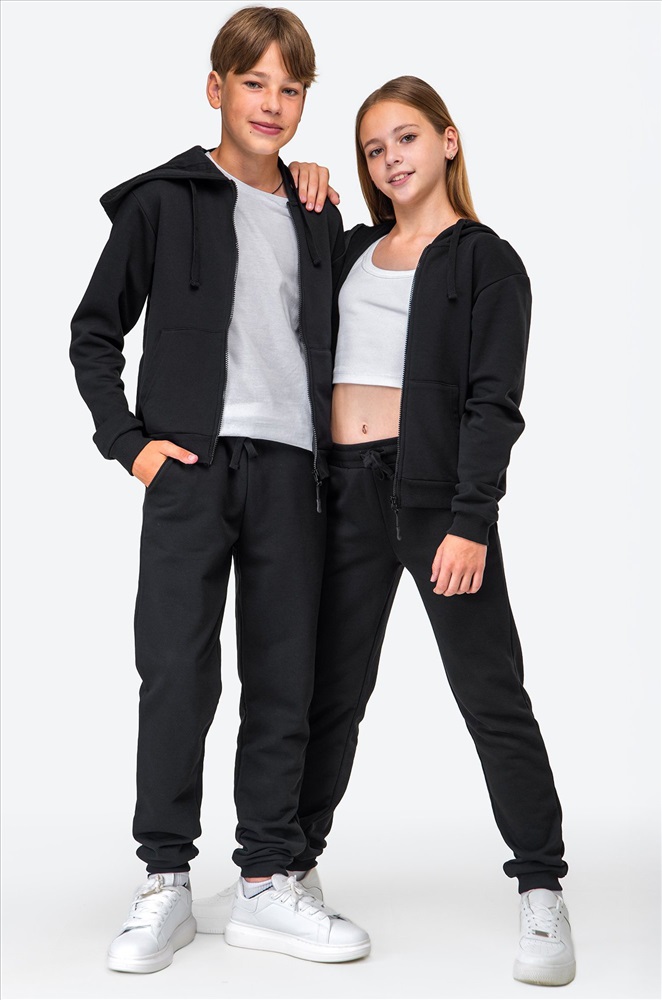 Однотонный костюм двойка серого цвета для детей и подростков выполнен из трикотажа, который идеален для осени, весны и даже зимы. Хлопковый черный костюм хорошо тянется и держит форму даже после частых стирок благодаря добавлению полиэстера. В комплекте толстовка зипка с длинными рукавами и штаны джоггеры. Эластичные манжеты не позволяют рукавам и штанинам задираться при активных движениях, уютный карман-кенгуру согревает руки в прохладную погоду, а капюшон защищает от ветра. Посадку можно отрегулировать удобным шнурком на поясе. Трикотажный брючный костюм идеален для осенних, весенних дней и зимних дней. Костюм из хлопка станет отличным вариантом для повседневных прогулок и тренировок. Подростковый демисезонный костюм идеален в качестве спортивной формы для уроков физкультуры в школе. В нем удобно заниматься спортом в школьных секциях и бегом на улице. Спортивки и худи на молнии можно носить как вместе, так и по отдельности, создавая крутые образы в уличном стиле. Модель Вероника, ее рост 149 см, параметры: 76-63-81 см. На ней костюм 152 размера. Модель Данила, его рост 160 см, параметры: 76-67-78 см. На нем костюм 158 размера.