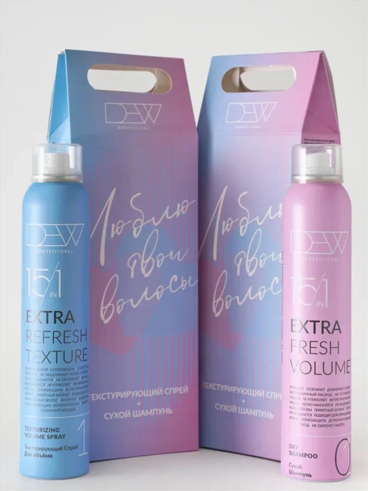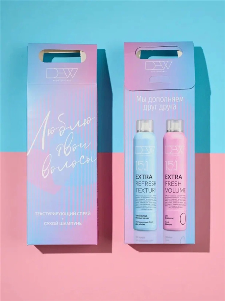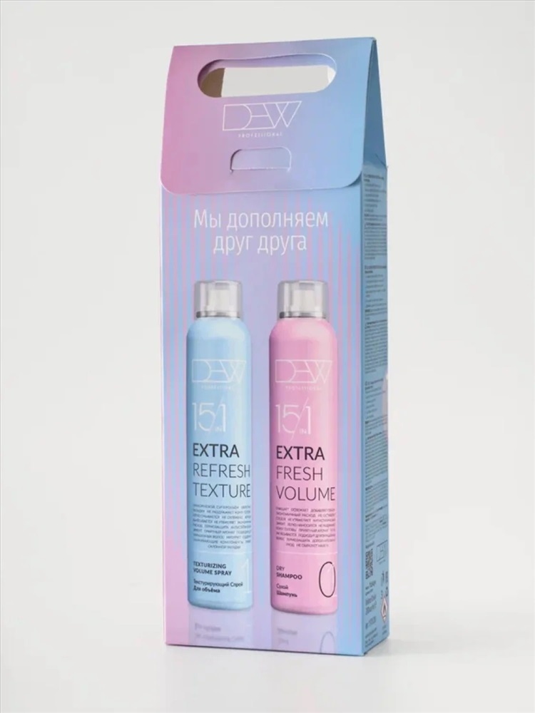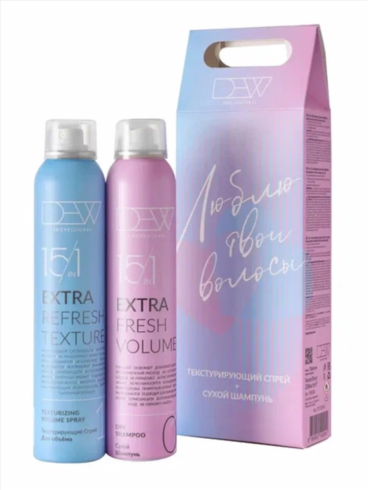 DEW Professional TEXTURE + VOLUME — стильный и функциональный подарочный набор для создания объема и свежести волос без воды. Идеальное решение для активного ритма жизни, командировок, праздников и каждодневного ухода. Подходит для женщин и мужчин, всех типов волос, включая окрашенные и тонкие.