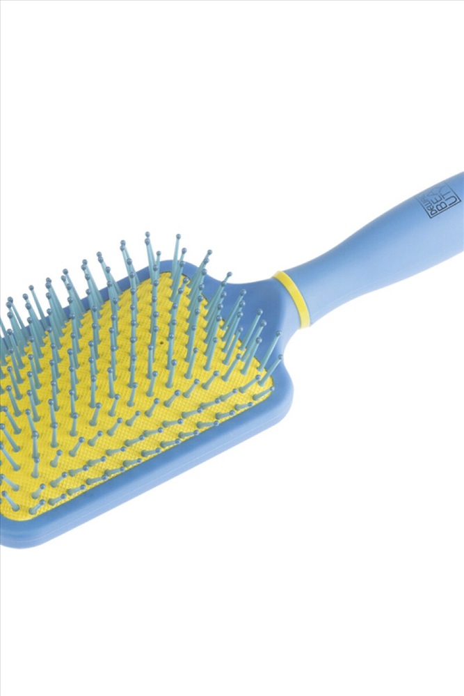 Щетка выполнена в нежном йогуртовом цвете. Прорезиненное покрытие SOFT TOUCH придаёт дополнительное удобство в использовании. Нейлоновые штифты и мягкая подушка идеально подходят для бережного расчесывания волос. Для волос любой длины. - форма: квадратная; - цвет: синяя с желтым; - размеры: 25 х 9 см.