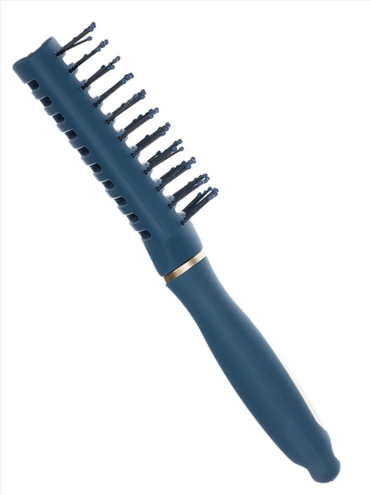 Щетка для волос Dewal Beauty серия "Магия" продувная. Продувные щетки предназначены для работы с феном. Такая щетка расправляет волосы, открывая внутренние слои прически для струи воздуха — а значит, делает сушку более быстрой и эффективной. Расческа массажная имеет массажные шарики на концах щетины, которые мягко массируют волосы помогая лучшей циркуляции крови. Расческа может использоваться для расчесывания волос как при сушке фена, так и во время укладки. Она позволяет легко пройти через волосы, распутывая их, не повреждая при этом структуру волос
