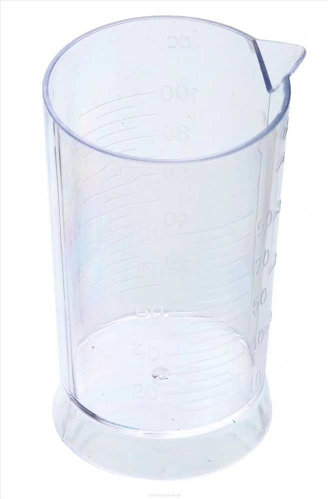Мерный стакан DEWAL содержит две шкалы в разных единицах измерения: миллилитры и унции. Для комфортного и аккуратного слива жидкости на горловине стакана предусмотрен носик. Объём вмещаемой жидкости – 100 мл. Даже при максимальной наполненности стакан отличается устойчивостью благодаря широкому дну.