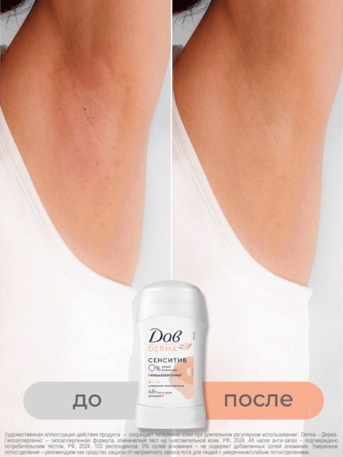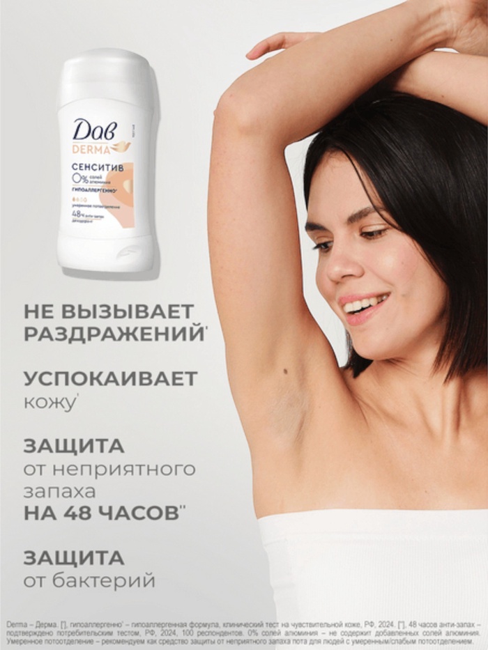 Гипоаллергенный' дезодорант-стик Дав Derma от запаха пота создан для женщин, в том числе для беременных, для девушек и для подростков.