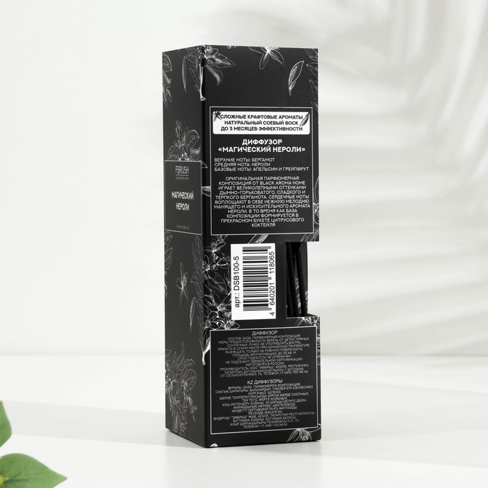 Диффузор ароматический BLACK AROMA HOME "Магический нероли", 100 мл — изысканный аромат с тонкими цветочно-цитрусовыми оттенками. Нероли наполняет пространство ощущением лёгкости, свежести и утончённой гармонии, создавая атмосферу уюта и вдохновения. Элегантный флакон станет стильным акцентом интерьера и подарит дому особое настроение.