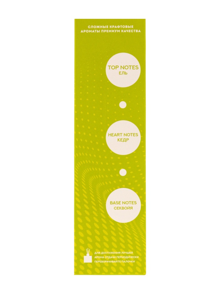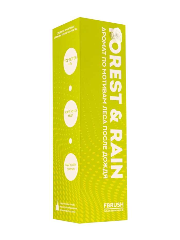 Его аромат раскрывается зелёными древесными нотами, дополненными влажной прохладой мха и лёгкой свежестью листьев. Композиция создаёт ощущение прогулки по лесу после летнего дождя, наполняя пространство умиротворением и естественной гармонией. Такой аромат помогает расслабиться, восстановить внутреннее равновесие и добавить уют природного лесного воздуха в ваш дом.
