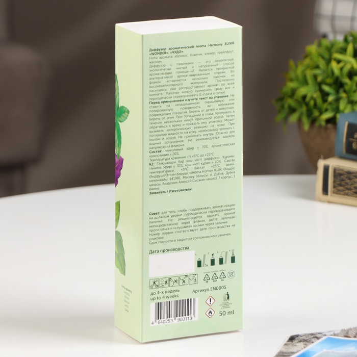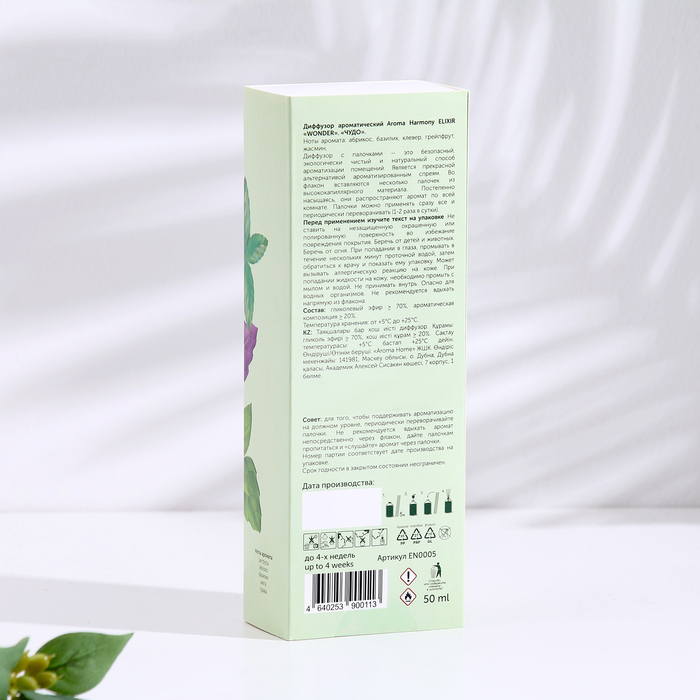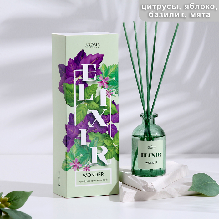 Страна: Россия В боксе: 10 шт Состав: См. на упаковке Материалы: см. на упаковке Фасовка: по 1 шт Индивидуальная упаковка: Картонная коробка Сертификат: Не подлежит сертификации Объём, мл: 50 Вид ароматизатора: Диффузор Аромат: Эвкалипт, Базилик, Яблоко, Гвоздика, Мята, Пачули Диффузор ароматический Elixir "Wonder", 50 мл Погрузитесь в атмосферу волшебства и утончённой гармонии с ароматическим диффузором Elixir "Wonder". Его изысканный и лёгкий аромат создаёт ощущение свежести и спокойствия, наполняя пространство уютом и вдохновением. Идеально подходит для гостиной, спальни, кабинета или ванной комнаты, добавляя интерьеру нотку элегантности и загадочности. Особенности: