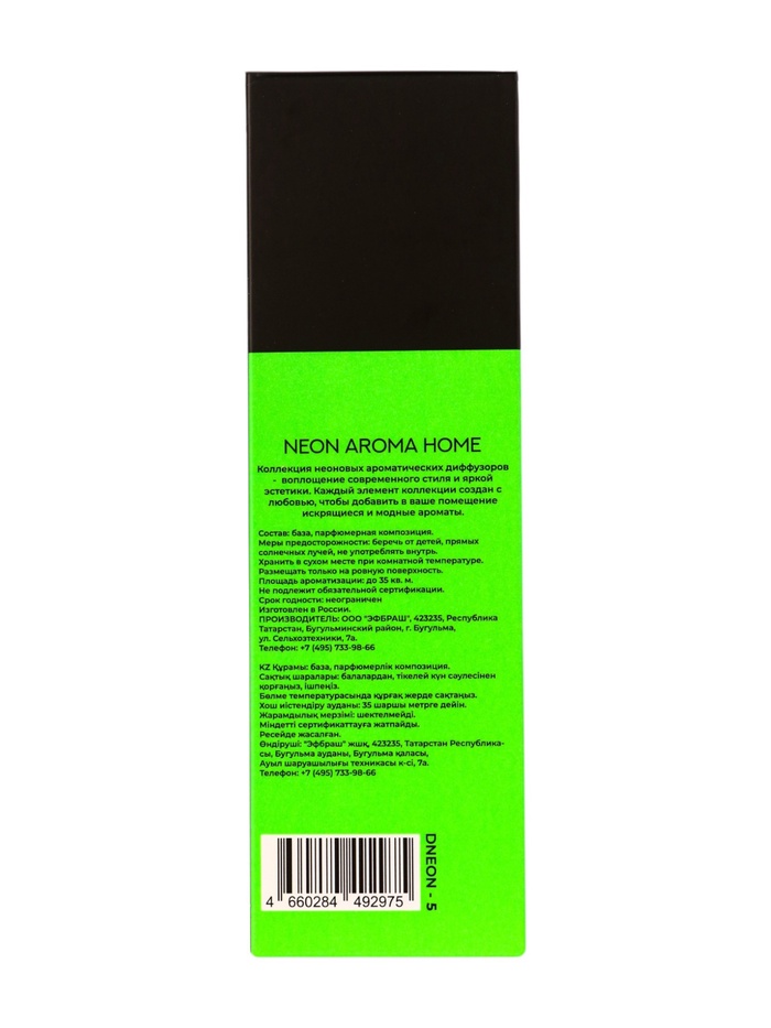 Габариты: 6 x 6 x 21 Страна: Россия В боксе: 10 шт Состав: См. на упаковке Материалы: см. на упаковке Фасовка: по 1 шт Индивидуальная упаковка: Цветная картонная коробка Сертификат: Не подлежит сертификации Объём, мл: 100 Вид ароматизатора: Диффузор Аромат: Зелёный чай Окунитесь в свежесть и лёгкость вместе с диффузором NEON «GREEN TEA». Его аромат раскрывается нежными зелёными нотами чая с лёгкой травяной свежестью, создавая ощущение утреннего сада и умиротворяющей гармонии. Композиция наполняет пространство спокойствием, чистотой и ясностью мысли, помогая сосредоточиться и восстановить внутренний баланс. Идеален для: дома — чтобы создать атмосферу свежести и умиротворения в гостиной, спальне или кабинете; SPA-зон — для релаксации и восстановления сил; офиса — чтобы поддерживать ясность ума и продуктивность. Способ применения: Снимите крышку с флакона и аккуратно вставьте в него палочки. Для лёгкого аромата используйте 2–3 палочки, для более насыщенного — все, что в комплекте. Переворачивайте палочки 1–2 раза в неделю, чтобы обновить интенсивность запаха. Располагайте диффузор вдали от прямых солнечных лучей и отопительных приборов — так он сохранит аромат дольше. верхние ноты: каннабис средние ноты: лемонграсс базовые ноты: незабудка Комментарии к товару