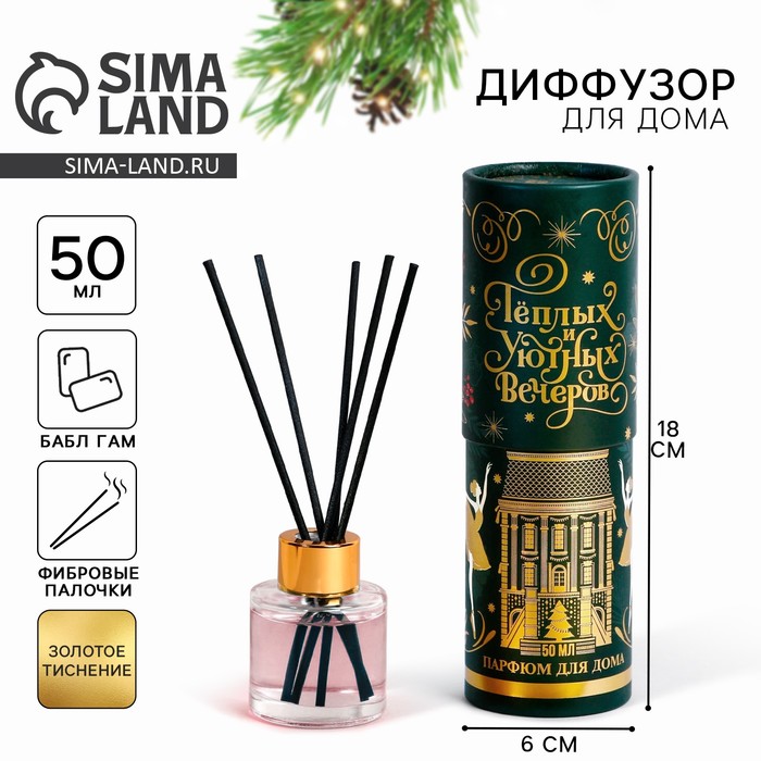 Габариты: 6 x 6 x 18,5 Страна: Китай В боксе: 100 шт Состав: Микрофибра, пластик, спирт, стекло, ароматизатор Материалы: микрофибра, пластик, спирт, стекло, ароматизатор Фасовка: по 1 шт Индивидуальная упаковка: Тубус Сертификат: Не подлежит сертификации Набор: Нет Цвет: Золотистый, Розовый, Зелёный Объём, мл: 50 Символ года: Нет Тематика праздника: Новый год Вид ароматизатора: Диффузор Аромат: Бабл-гам Стиль: Ар-деко Диффузор ароматический палочки новогодний «Уютных вечеров», аромат бабл гам, 50 мл - для дома, кабинета и офиса. Ароматные палочки и диффузоры являются современным модным элементом интерьера. Ароматический диффузор создаёт комфорт и притягательную ауру в помещении. Применение: Извлеките диффузор из упаковки, откройте крышку и защитный колпачок, опустите палочки в ароматизированную жидкость и наслаждайтесь. Ароматизированная жидкость пропитывает палочки, и, благодаря чему, аромат распространяется по всему помещению. Комментарии к товару