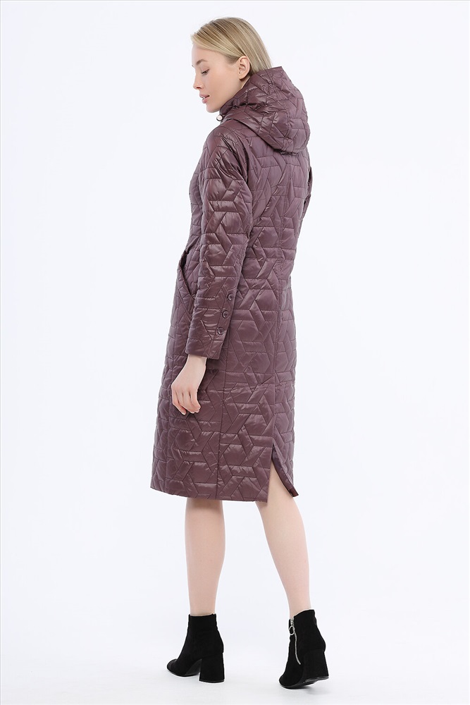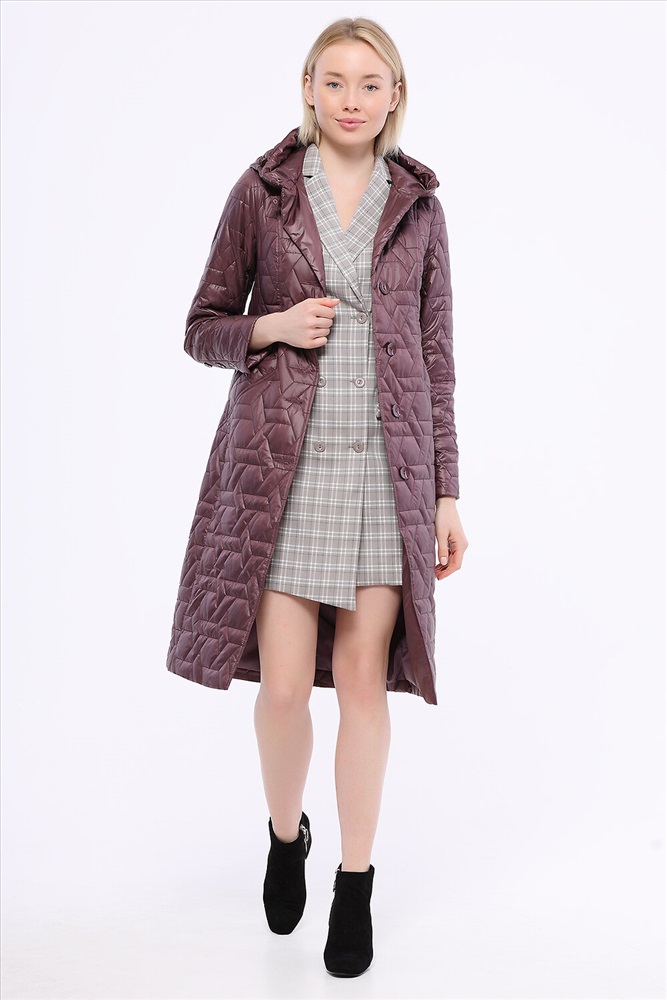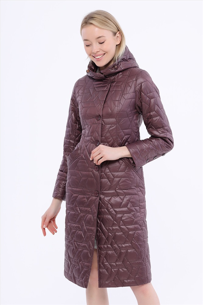 Утепленное пальто российского производства бренда D'imma из стеганной ткани с водоотталкивающей пропиткой. Застежка на пуговицы, декоратиная кнопка у горловины. Капюшон с кулиской, не отстегивается. Декоративные пуговицы на манжетах. Широкий размерный ряд, в наличии большие размеры.