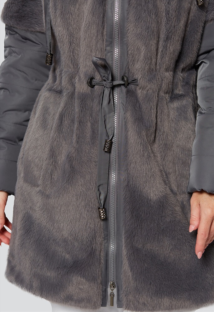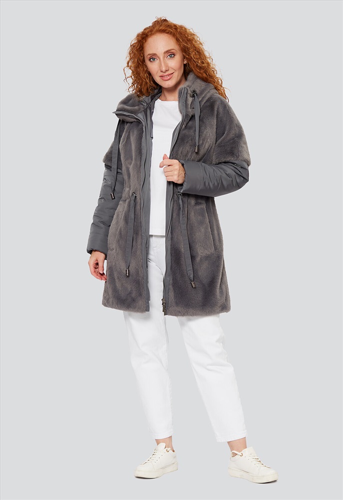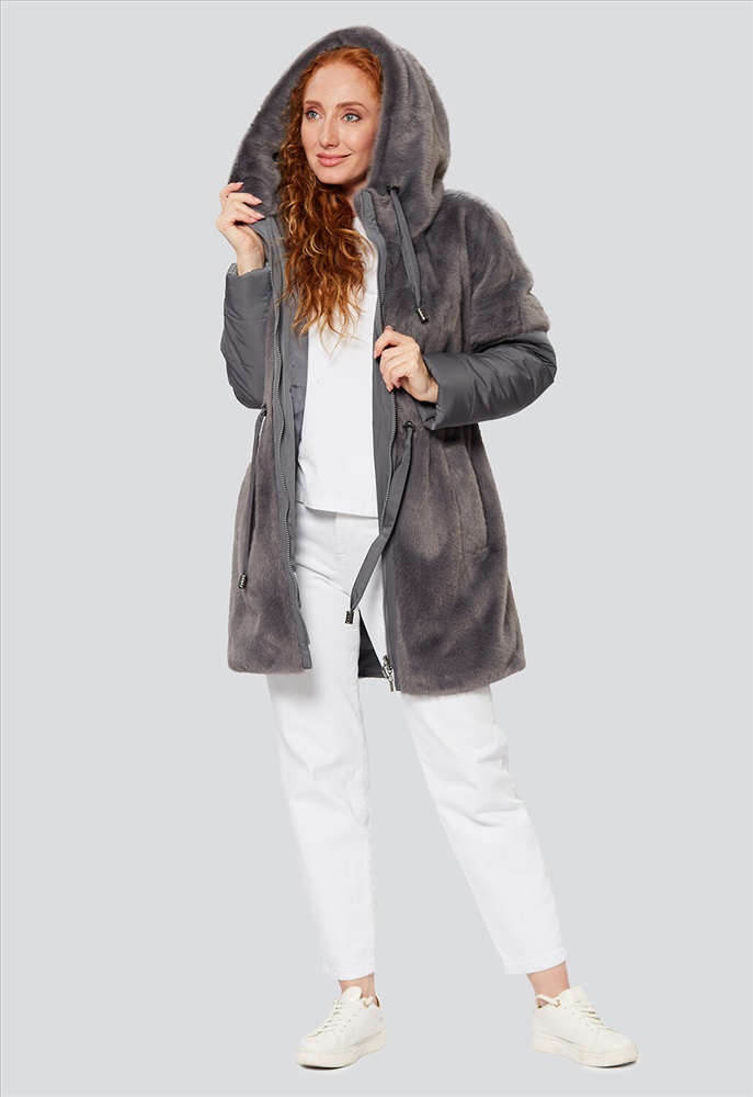 Шикарное, невероятно женственное, нарядное демисезонное пальто комфортной длины в Casual-стиле от российского производителя D’imma Fashion Studio прямого силуэта с утеплителем нового поколения ТерМакс - необходимая часть гардероба, позволяющая подчеркнуть стиль, имидж и даже настроение женщины. Благодаря особой обработке каландером, утеплитель тонкий и лёгкий, сильнее сохраняет тепло, поэтому пальто теплое и очень легкое. Модель свободного кроя с цельнокроеным комбинированным рукавом и несъемным капюшоном из супермодного Эко меха " под норку", Рукава выполнены из стеганной ткани. Их можно подвернуть, сделать короче и оформить манжет. За дополнительную защиту от непогоды отвечает воротник-стойка, переходящий в несъемный капюшон со шнурком, регулирующим объем капюшона. Модель с застежкой на декоративную, но в то же время функциональную двухзамковую реверсную молнию и поясом-кулиской, формирующим приталенный силуэт. Пальто с просторными карманами с листочками, застегивающимися на кнопки, которые завершают зимнюю симфонию модели. Есть большие размеры. Прямой силуэт и ничего лишнего, что может помешать Вам любоваться окружающим миром по дороге на работу, на прогулке в парке или по городу. Не взирая на причуды природы, в такой модели Вы будете выглядеть женственно и неповторимо. Можно дополнять яркими аксессуарами и менять образ под настроение. Разнообразные версии – ключ к созданию линейки модных, индивидуальных луков.