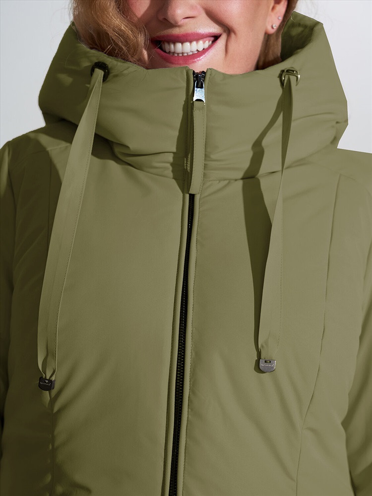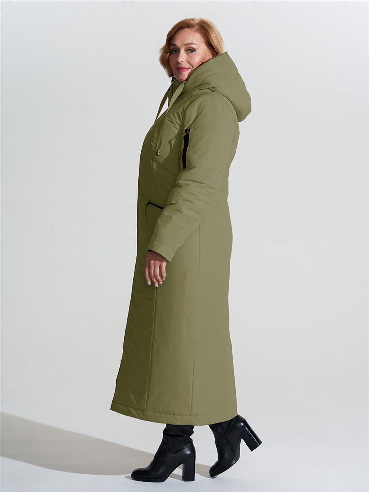 Длинное зимнее пальто приталенного силуэта с центральной застежкой на металлическую, двух замковую молнию. Внутри ветрозащитный клапан. Модель садится на любую фигуру, скрывая ее недостатки и подчеркивая стройность. Плащевая ткань с мембраной , очень стойкая к осадкам и загрязнениям, отталкивает воду и защищает от ветра, пропускает через себя водяной пар. Благодаря качественному утеплителю "ТермМакс" в пальто будет комфортно как поздней осенью, так и зимой. Подкладочная ткань с принтом. Карманы с молниями, капюшон не отстегивается, затягивается на кулиску. Внутренние трикотажные манжеты дополнительно защищают от холода.