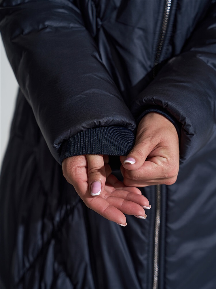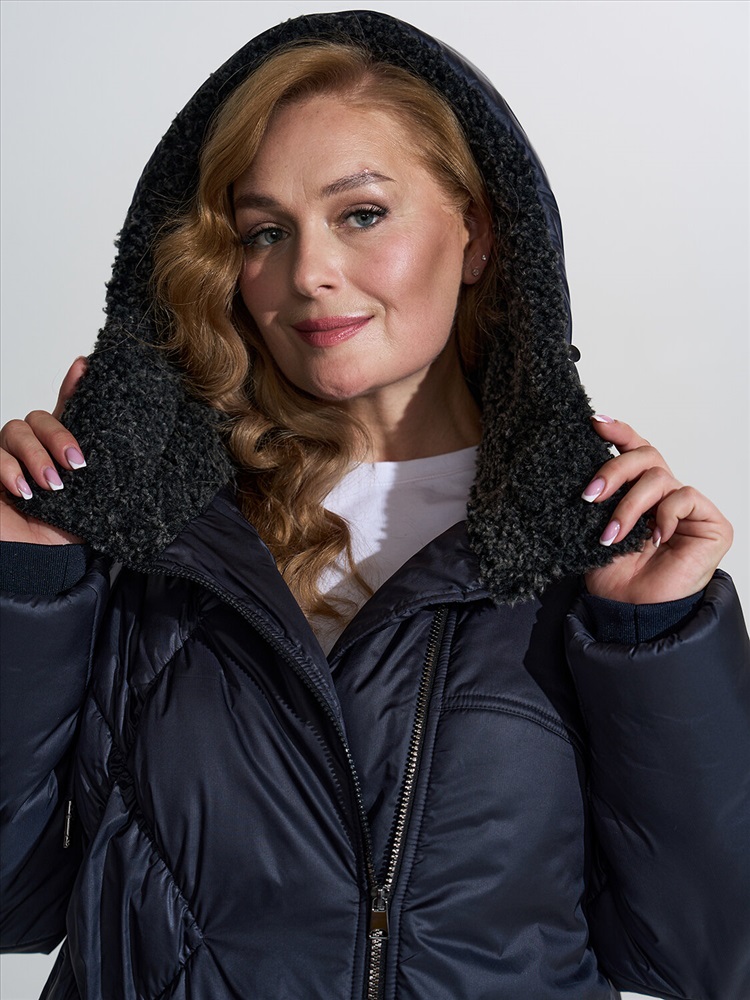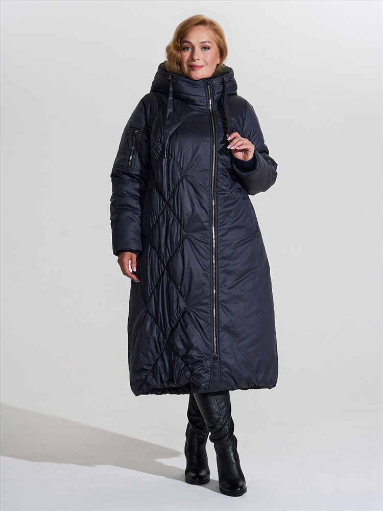 Дизайнерское женственное зимнее, удлиненное пальто. Идеально выверенная конструкция скрывает все недостатки фигуры. Застежка на тракторную двухзамковую молнию. Карманы на полочке на внутренних кнопках, а дополнительный карман на рукаве застегиваются на молнию. Капюшон не отстегивается, затягивается кулиской, отделан внутри эко-мехом «шерпа» для дополнительной теплозащиты. Рукава с внутренними трикотажными манжетами. Эластичная сборка на полочке способствует идеальной посадке на любую фигуру. Эта модель выполнена из ткани с водоотталкивающей пропиткой, которая очень поможет в дождливую и ветренную погоду. Благодаря новейшему утеплителю ТермМакс, пальто будет очень теплым и легким. Его сильные стороны заключаются в следующем: высокие показатели тепло- и воздуха проводимости, малый удельный вес, хорошая эластичность, гигиеничность, упругость, прочность, долговечность, формоустойчивость, легкая стирка и быстрая сушка. Принтованная подкладка прекрасно пропускает воздух и влагу. Внутренний карман. Широкий размерный ряд, в наличии большие размеры