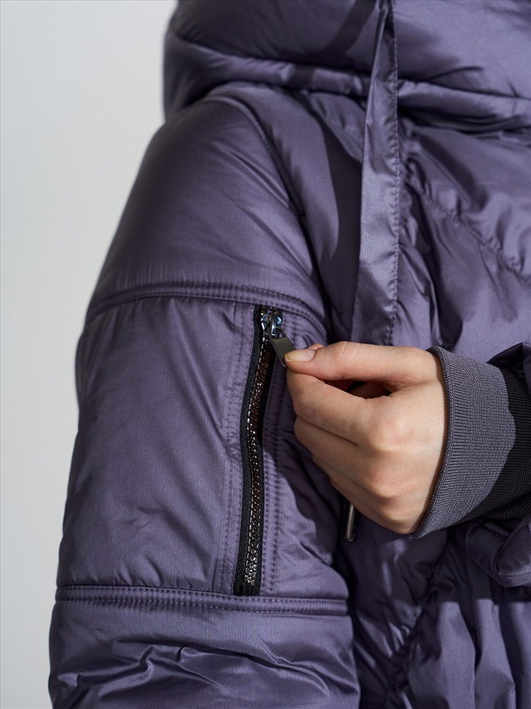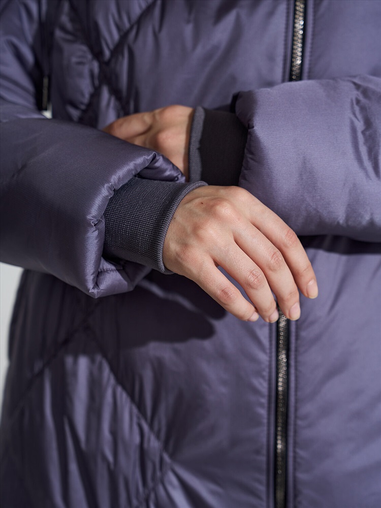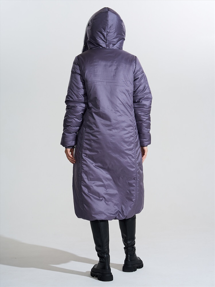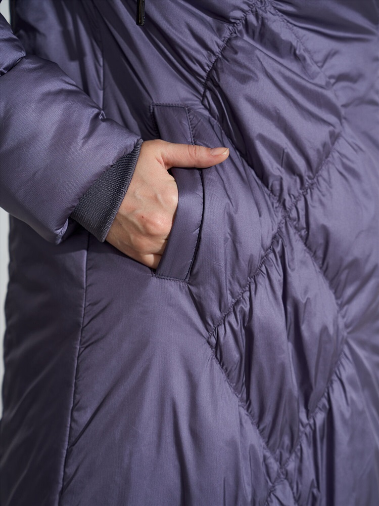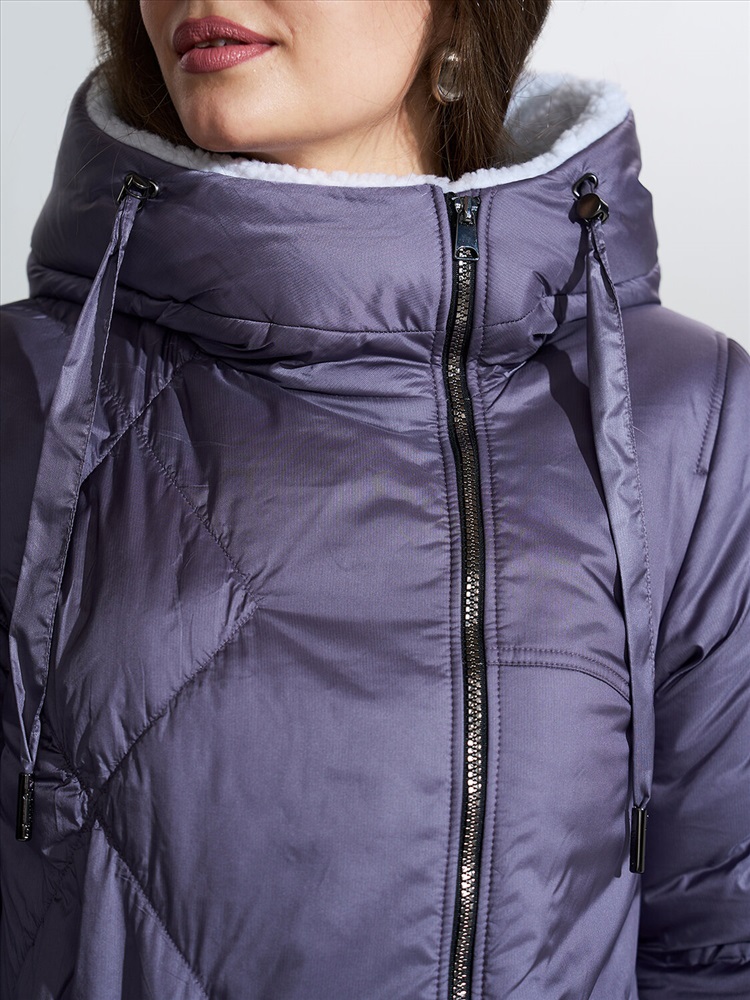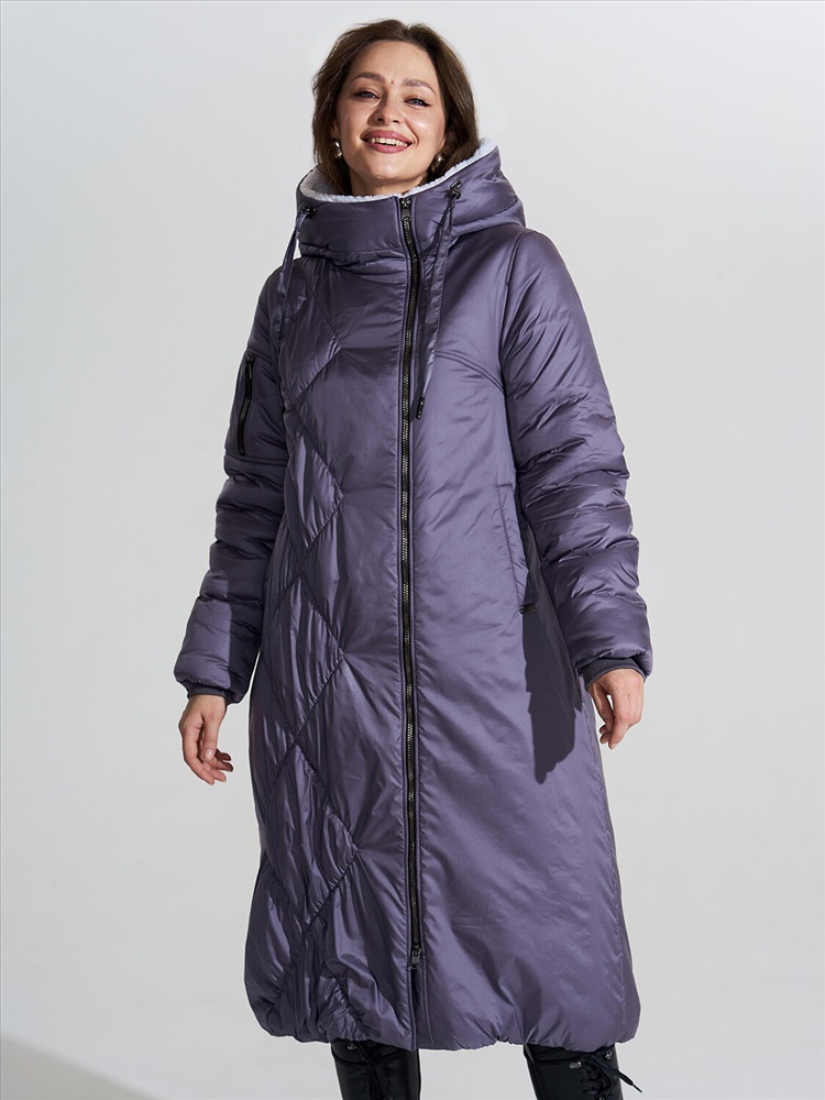 Дизайнерское женственное зимнее, удлиненное пальто. Идеально выверенная конструкция скрывает все недостатки фигуры. Застежка на тракторную двухзамковую молнию. Карманы на полочке на внутренних кнопках, а дополнительный карман на рукаве застегиваются на молнию. Капюшон не отстегивается, затягивается кулиской, отделан внутри эко-мехом «шерпа» для дополнительной теплозащиты. Рукава с внутренними трикотажными манжетами. Эластичная сборка на полочке способствует идеальной посадке на любую фигуру. Эта модель выполнена из ткани с водоотталкивающей пропиткой, которая очень поможет в дождливую и ветренную погоду. Благодаря новейшему утеплителю ТермМакс, пальто будет очень теплым и легким. Его сильные стороны заключаются в следующем: высокие показатели тепло- и воздуха проводимости, малый удельный вес, хорошая эластичность, гигиеничность, упругость, прочность, долговечность, формоустойчивость, легкая стирка и быстрая сушка. Принтованная подкладка прекрасно пропускает воздух и влагу. Внутренний карман. Широкий размерный ряд, в наличии большие размеры