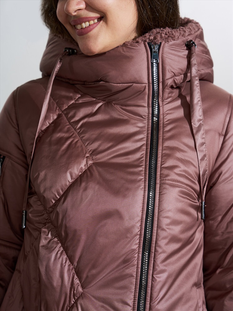 Дизайнерское женственное зимнее, удлиненное пальто. Идеально выверенная конструкция скрывает все недостатки фигуры. Застежка на тракторную двухзамковую молнию. Карманы на полочке на внутренних кнопках, а дополнительный карман на рукаве застегиваются на молнию. Капюшон не отстегивается, затягивается кулиской, отделан внутри эко-мехом «шерпа» для дополнительной теплозащиты. Рукава с внутренними трикотажными манжетами. Эластичная сборка на полочке способствует идеальной посадке на любую фигуру. Эта модель выполнена из ткани с водоотталкивающей пропиткой, которая очень поможет в дождливую и ветренную погоду. Благодаря новейшему утеплителю ТермМакс, пальто будет очень теплым и легким. Его сильные стороны заключаются в следующем: высокие показатели тепло- и воздуха проводимости, малый удельный вес, хорошая эластичность, гигиеничность, упругость, прочность, долговечность, формоустойчивость, легкая стирка и быстрая сушка. Принтованная подкладка прекрасно пропускает воздух и влагу. Внутренний карман. Широкий размерный ряд, в наличии большие размеры