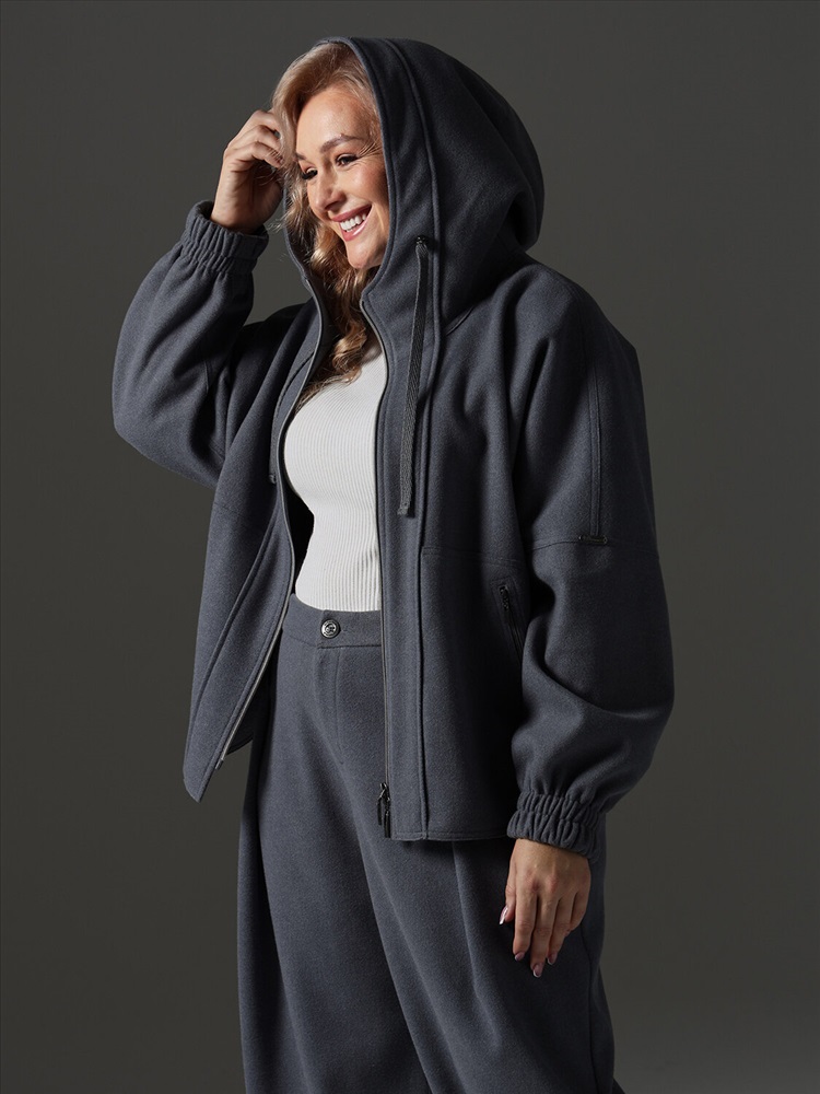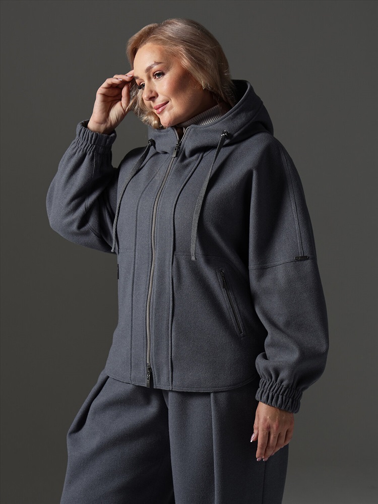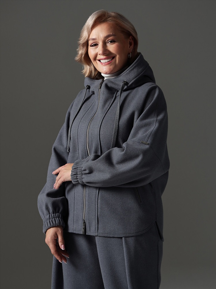 Жакет оверсайз выполнен из ткани высокого качества, что делает ее приятной на ощупь. Модель сочетает в себе элементы спортивного и повседневного стиля. Застежка на молнию. Капюшон затягивается на кулиску. Длина рукава регулируется отворотом. Прямой силуэт изделия мягко скрывает недостатки фигуры и подчеркивает достоинства.