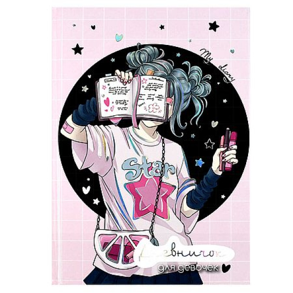 Дневничок для девочек А5 (145х205 мм), 48 л., блок - полноцветная печать, твёрдый переплёт, глянцевая ламинация, тиснение фольгой.