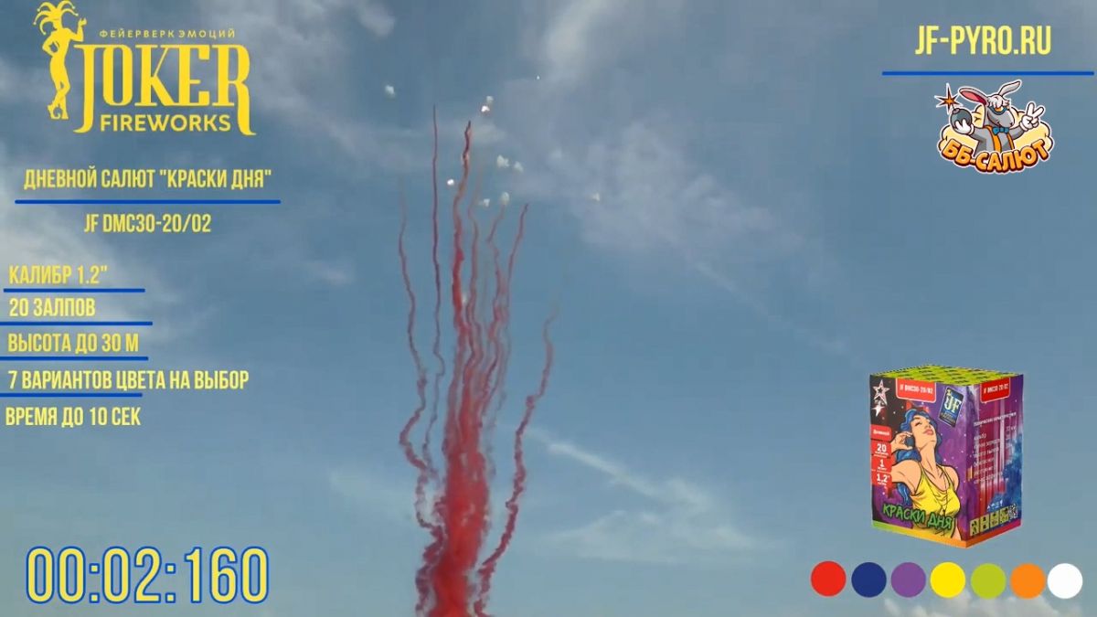 Калибр: 1.2 " Залпы: 20 Время работы: До 10 сек Высота фейерверка: До 30 м Цвет: Красный Размеры упаковки, мм: 175 х 145 х 225 Вес изделия, кг: 2.400 Фасовка: штука Описание: Новый тип дымовых батарей "Краски дня" содержит 20 трасс цветного дыма одного цвета (красный). В сочетании с дымовыми батареями белого и синего дыма может использоваться для изображения российского триколора. Также может использоваться для Gender Party (определение пола ребенка) Эффекты: 1. Красный цветной дым с треском на верхушке. Комментарии к товару