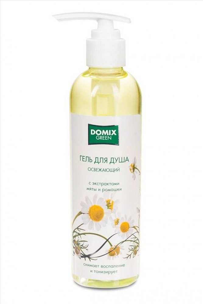 Domix Green Гель для душа освежающий Нежный гель для душа очищает кожу, сохраняя естественный уровень рН. Входящие в состав экстракты мяты и ромашки увлажняют и тонизируют кожу, обладают противовоспалительным и освежающим действием. Мягкие моющие компоненты обеспечивают поддержание оптимального рН баланса кожи. Аромат придает свежесть и уверенность. Возможно выпадение естественного осадка. Способ применения Нанести небольшое количество геля на ладонь или губку, распределить по мокрому телу, вспенить и смыть водой. Состав Aqua, Sodium Laureth Sulfate, Cocamidopropyl Betaine, Sodium Chloride, Alkylpolyglycosides, PEG-7 Glyceryl Cocoate, Polyquaternium-7, Glycerin, Peppermint Leaf Extract, Chamomilla Recutita (Matricaria) Extract, Citric Acid, Tetrasodium EDTA, Methylchlorisothiazolinone, Methylisothiazolinone, Perfume, Cl 19140.