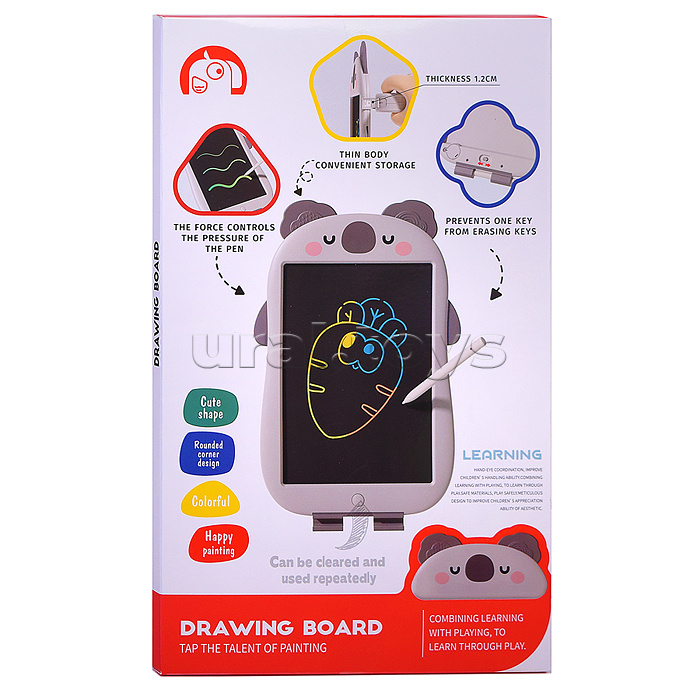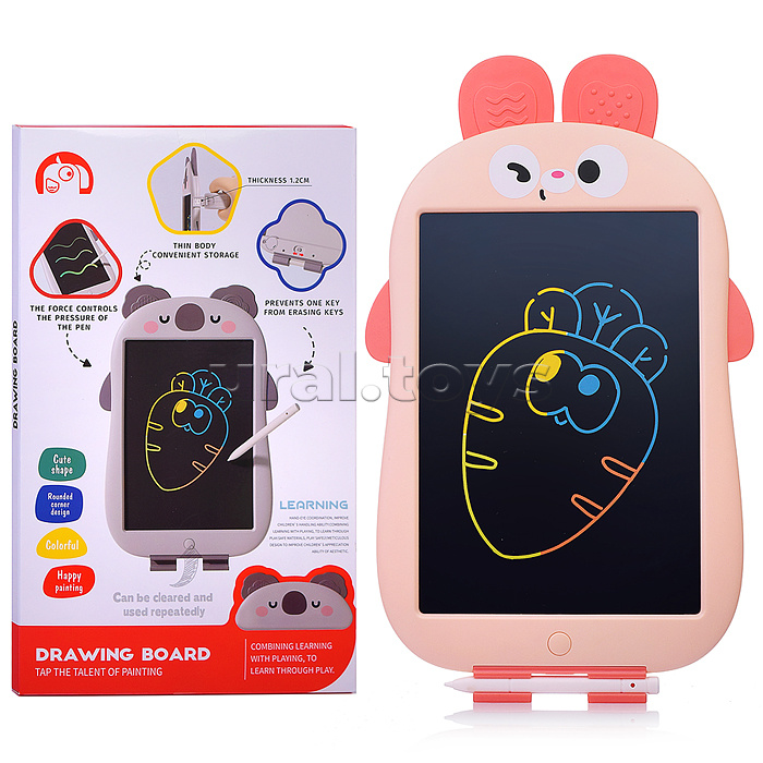 Код: 501928 Штрихкод: 6904112126273 Страна производитель: Китай Размеры упаковки: 35 x 22 x 2 см Количество в коробке: 108 Размеры доски: 21х35 см. Размеры рабочего поля: 15х21 см. Функции: - кнопка удаления. - блокировка. Работает от 1 батарейки "CR2025" (входит в комплект для демонстрации) Пластиковый стилус в комплекте. Материал: пластик. Для детей от 1.5 лет. Комментарии к товару