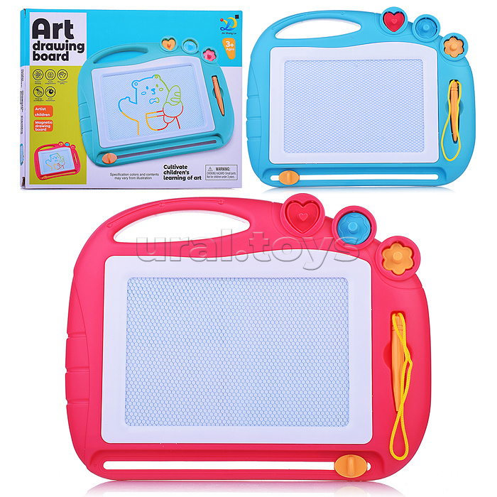Код: 504380 Штрихкод: 6933118027376 Страна производитель: Китай Размеры упаковки: 28 x 22 x 1.5 см Количество в коробке: 48 • Размеры: 27,5 х 21,5 см. • В комплекте: магнитная ручка и 3 штампа. • Можно стирать написанное. • Материал: пластик. • Соответствует требованиям безопасности и стандартам качества продукции. • Для детей от 3-х лет. Комментарии к товару