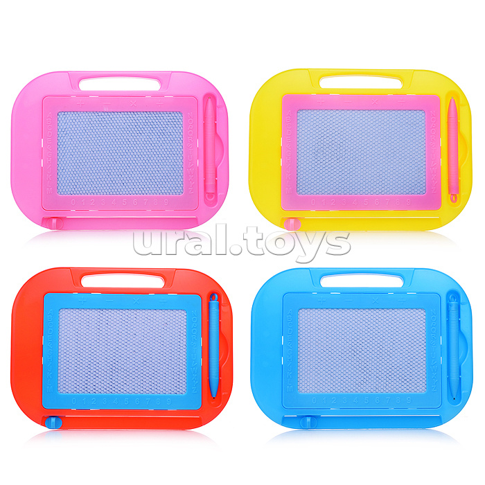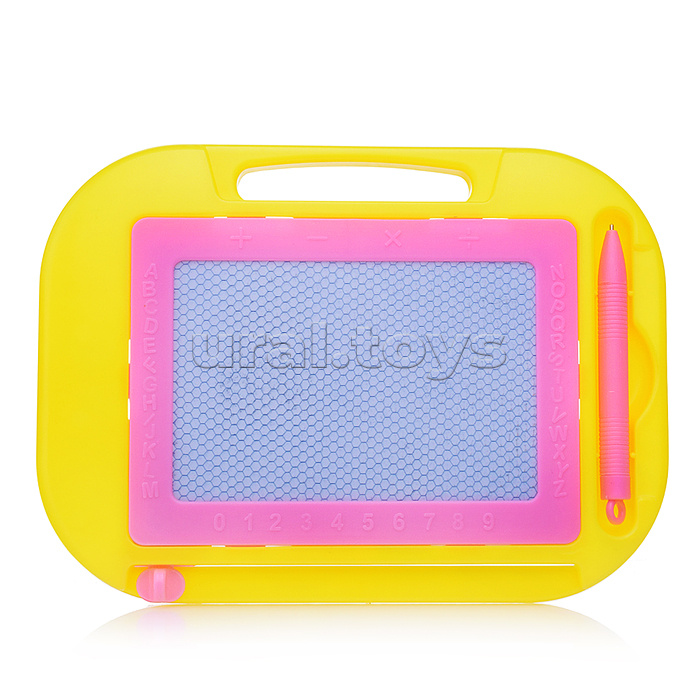 • Размеры игрушки: 21х15х1.5 см. • Размеры рабочего поля: 12х8 см. • В комплекте магнитная ручка. • Рисунки с доски можно стирать проведя ползунок из одной части доски в другую. • Материал: пластик. • Соответствует требованиям безопасности продукции. • Для детей от 3-х лет.