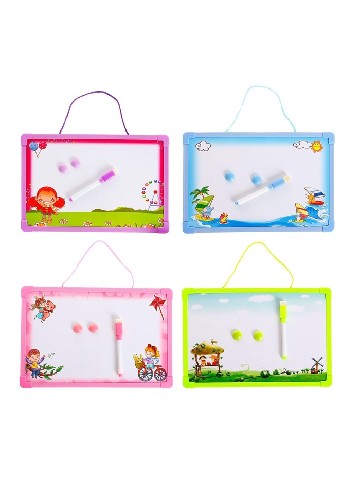 Габариты: 0,8 x 30 x 20 Страна: Китай В боксе: 96 набор Состав: Металл Материалы: металл Фасовка: по 1 набор Индивидуальная упаковка: Пакет Габариты товара: 0,8 см × 30 см × 20 см Сертификат: Не подлежит сертификации Цвет: МИКС Формат: А4 Длина, см: 30 Ширина, см: 20 Высота, см: 0,8 Возраст: От 3 лет Вид доски: Магнитно-маркерная Вид установки: Подвесной В комплекте: Маркер, Магнит Вид: Двусторонний Поверхность: Магнитная Вид: Доски для заметок и рисования Назначение: Магнитное рисование Тематика набора: Роспись, раскраска, рисование Доска магнитная, маркер и 2 магнита в комплекте, цвета МИКС значительно упростит вам задачу обучения малыша. На этой доске можно писать, рисовать, считать и заниматься с обучающими магнитами. Специальная губка полностью стирает всё написанное водным маркером, таким образом, доска становится многоразовой. Учитесь с удовольствием! Комментарии к товару